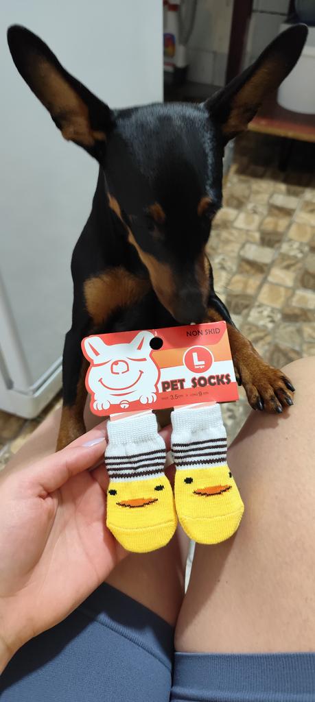 Superbes chaussettes, la taille était parfaite pour un mini Yorkie pesant 1,7 kg. Mais ils glissent) Je recommande le vendeur ❤️