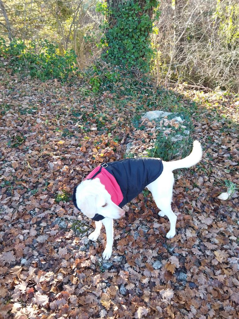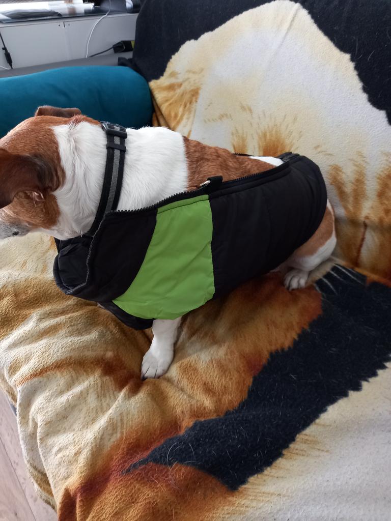 J'ai pris la taille au dessus du pull que porte mon chien... Impossible de fermer la veste, au niveau du poitrail, c'est trop court !