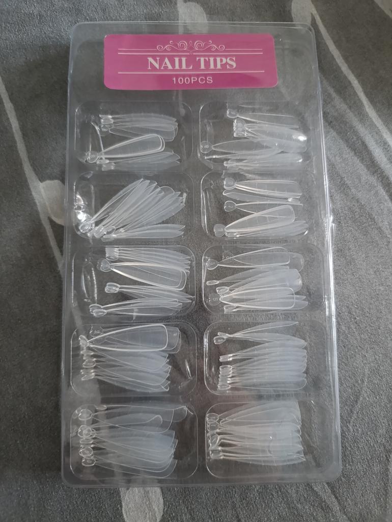⭐️⭐️⭐️⭐️⭐️ Nail Tips en lot de 100 pièces La commande est arrivée en 21 jours, bien emballée. Ce sont des pointes d'ongles à double usage. La qualité fait bonne impression, semble très stable, dans la boîte il y a différentes tailles, donc la bonne taille pour chaque doigt. Je recommande vivement cet article tout comme le vendeur.😊👍