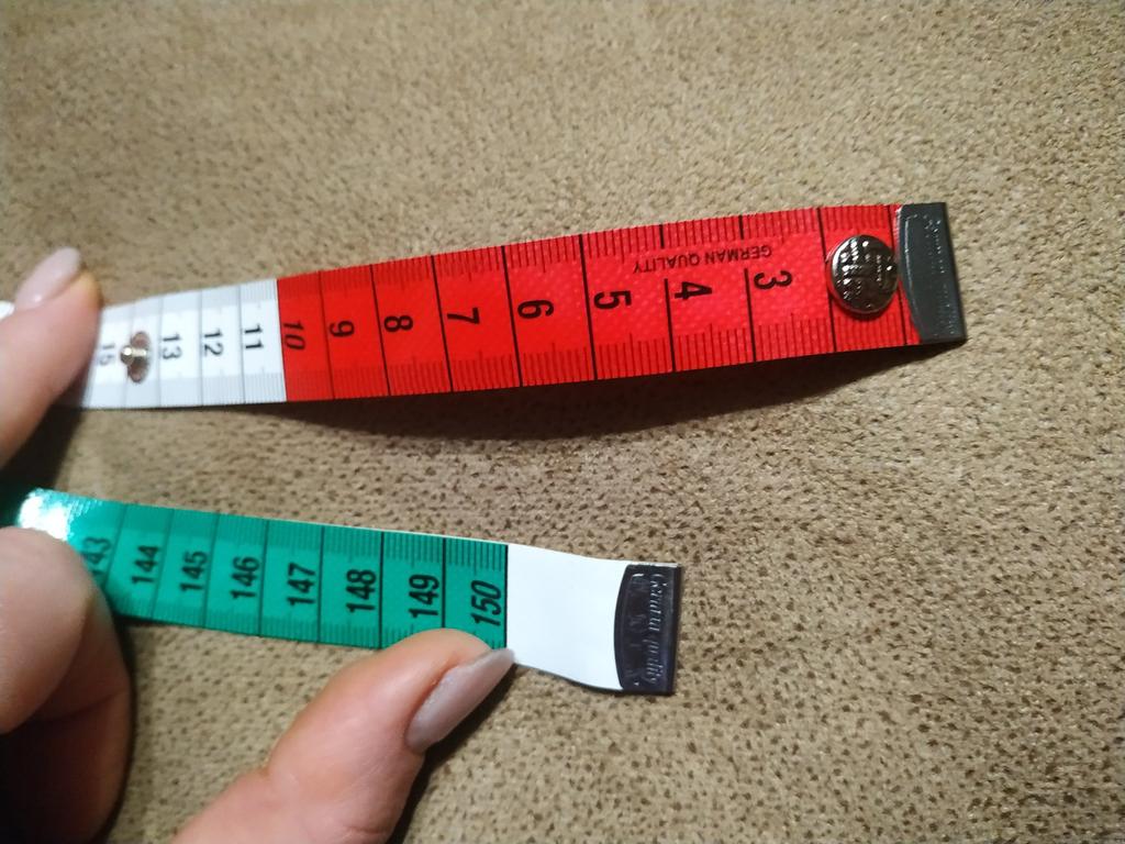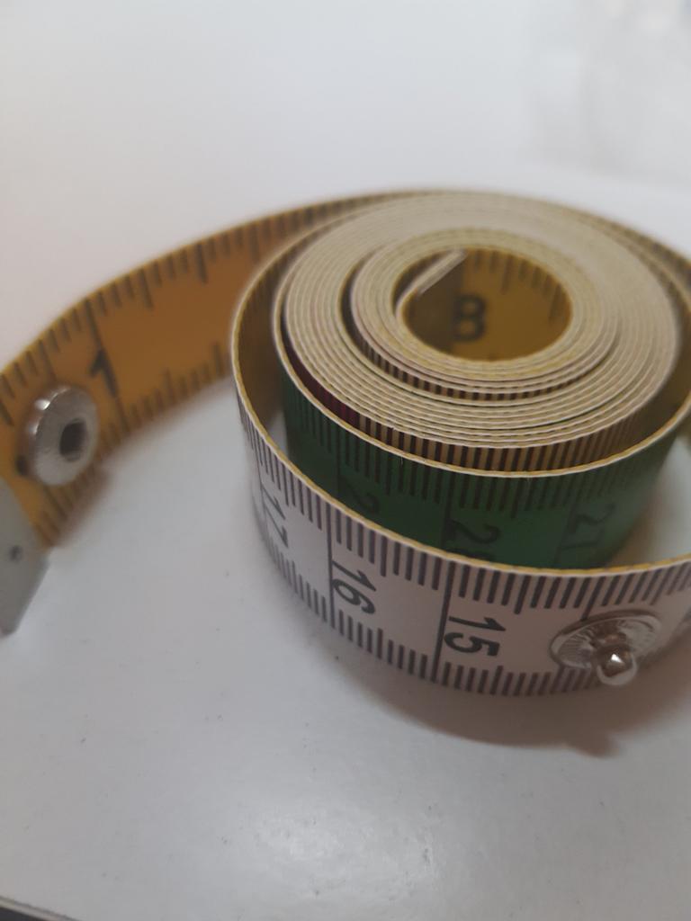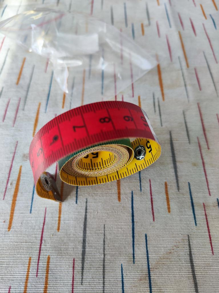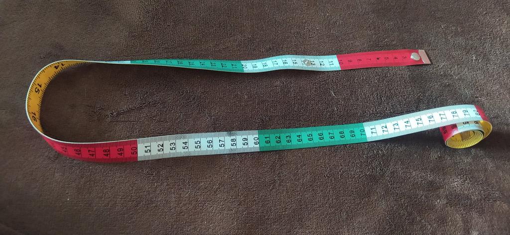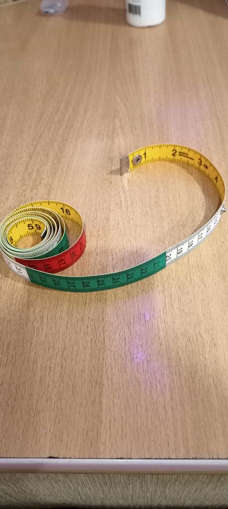 Ruban de tailleur au centimètre .🧵🪡✂️ Longueur -150cm, largeur -17mm. Le ruban torsadé se fixe avec un bouton-👍💯. Les numéros, les divisions sont clairement marqués. Tous les 10cm alternez 3 couleurs-❤️🤍💚. Au verso se trouve une couleur unie 💛 en pouces. La bande elle-même est épaisse mais roule bien.. Je suis très satisfait de la qualité, c'est pratique à faire des mesures.
