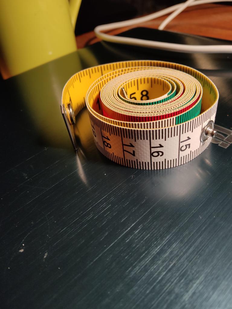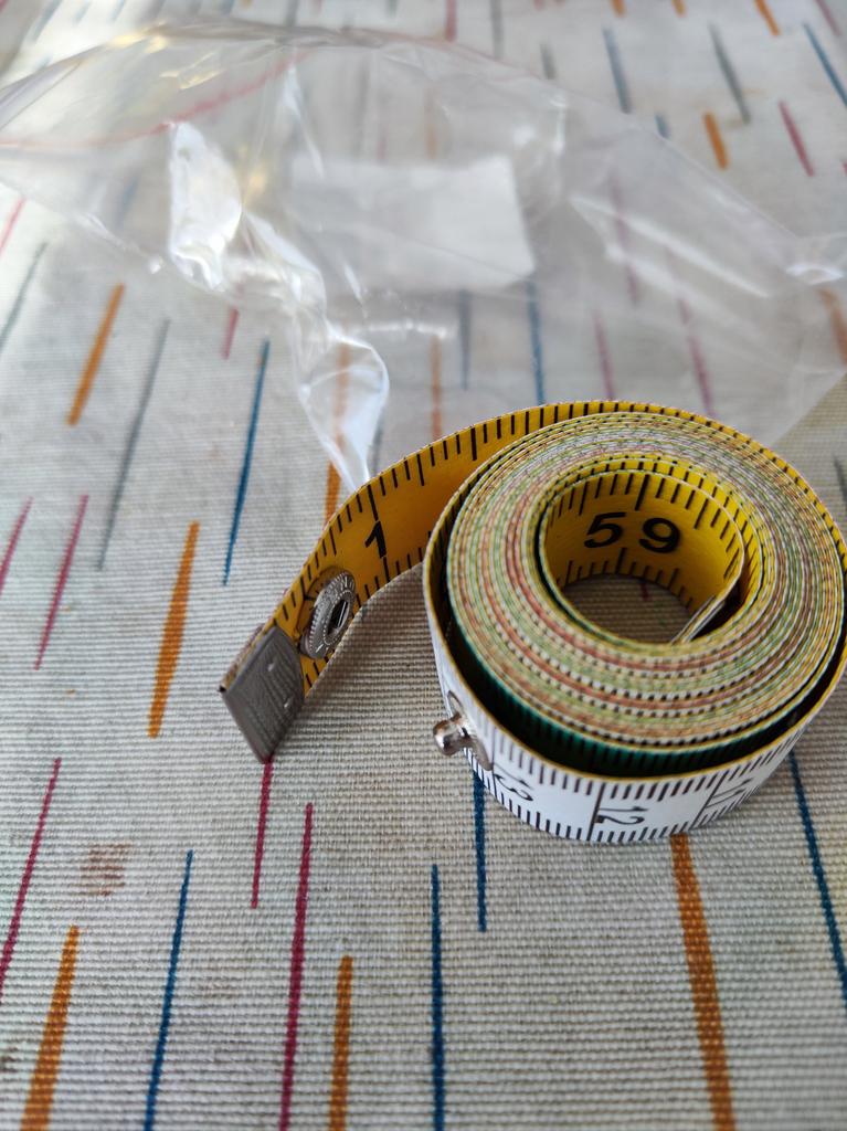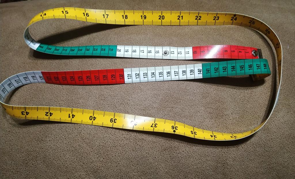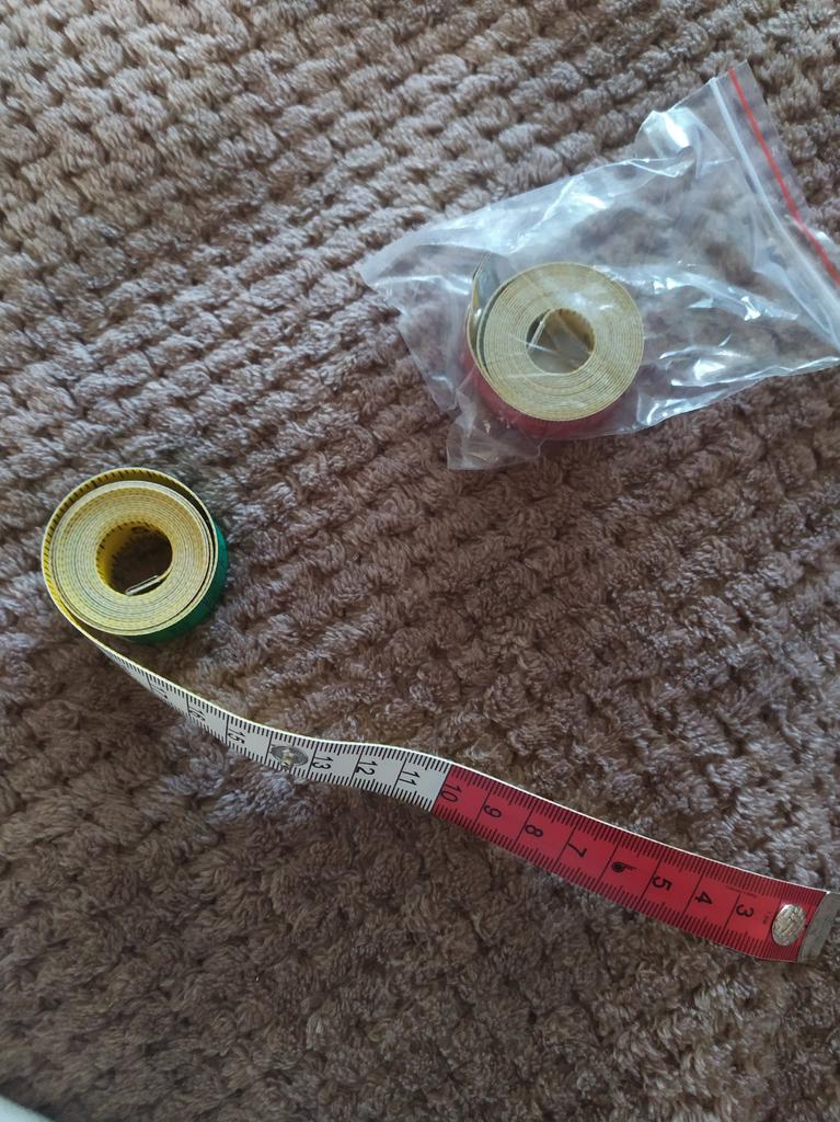 Ruban de tailleur au centimètre .🧵🪡✂️ Longueur -150cm, largeur -17mm. Le ruban torsadé se fixe avec un bouton-👍💯. Les numéros, les divisions sont clairement marqués. Tous les 10cm alternez 3 couleurs-❤️🤍💚. Au verso se trouve une couleur unie 💛 en pouces. La bande elle-même est épaisse mais roule bien.. Je suis très satisfait de la qualité, c'est pratique à faire des mesures.
