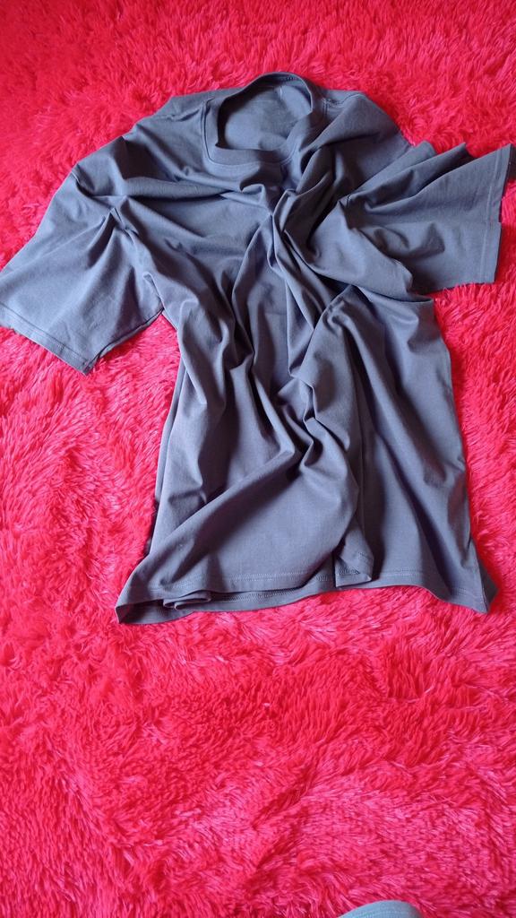 Un t-shirt normal, beau tissu, pas de fils lâches, coutures régulières. Seule la couleur est un peu plus foncée que sur la photo, mais ce n'est rien. Tout va bien, le canon est superbe :)