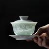 Bol à thé en céramique Kung Fu Gaiwan, moderne, en argile de Jade, vert ombre, avec couvercle, en porcelaine blanche, tasse à thé de bureau, verres
