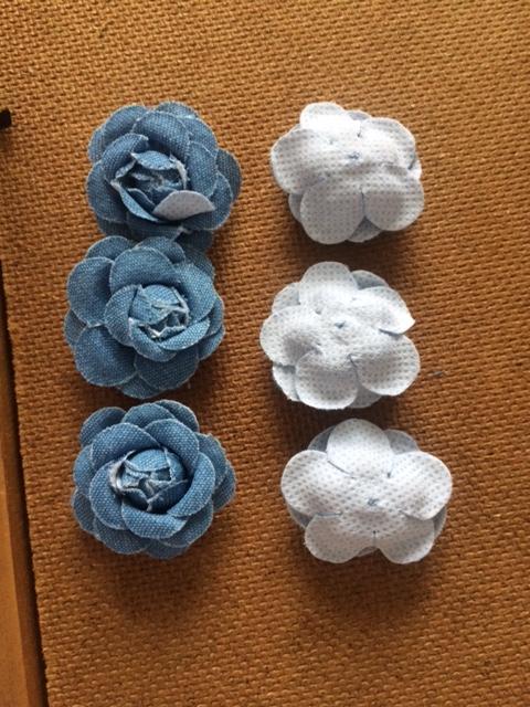 J'ai reçu 6 fleurs, j'ai moi-même confondu quelque chose, je cherchais une broche en jean, j'adapterai cette déco quelque part