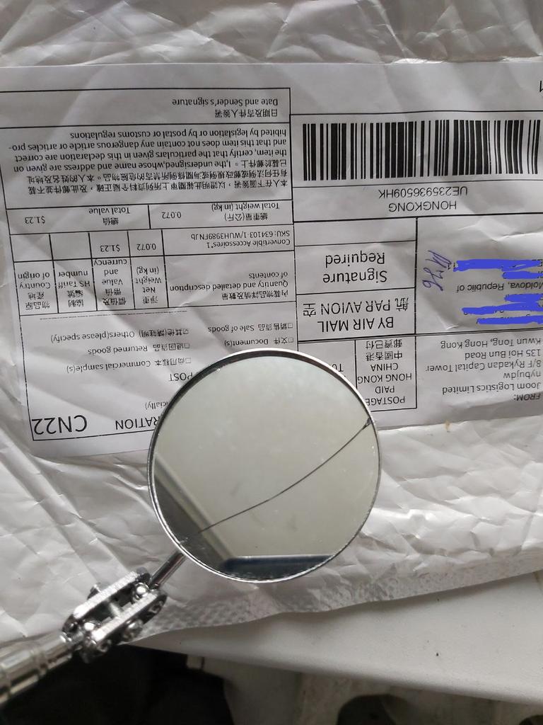 Il est arrivé avec un miroir cassé !