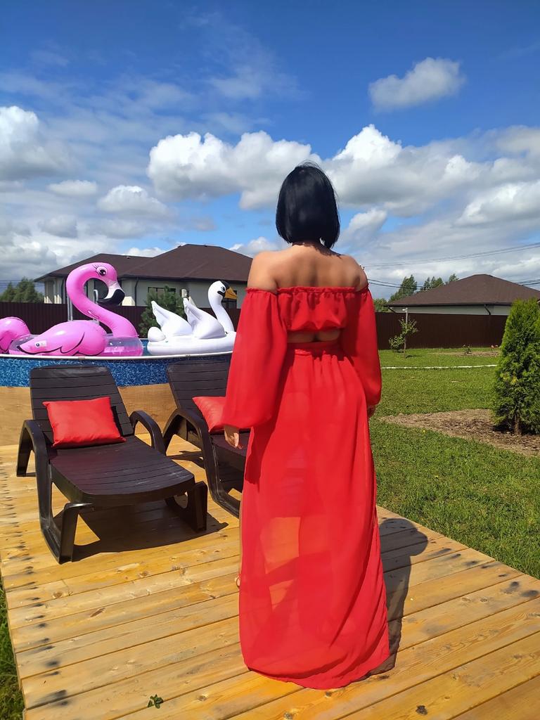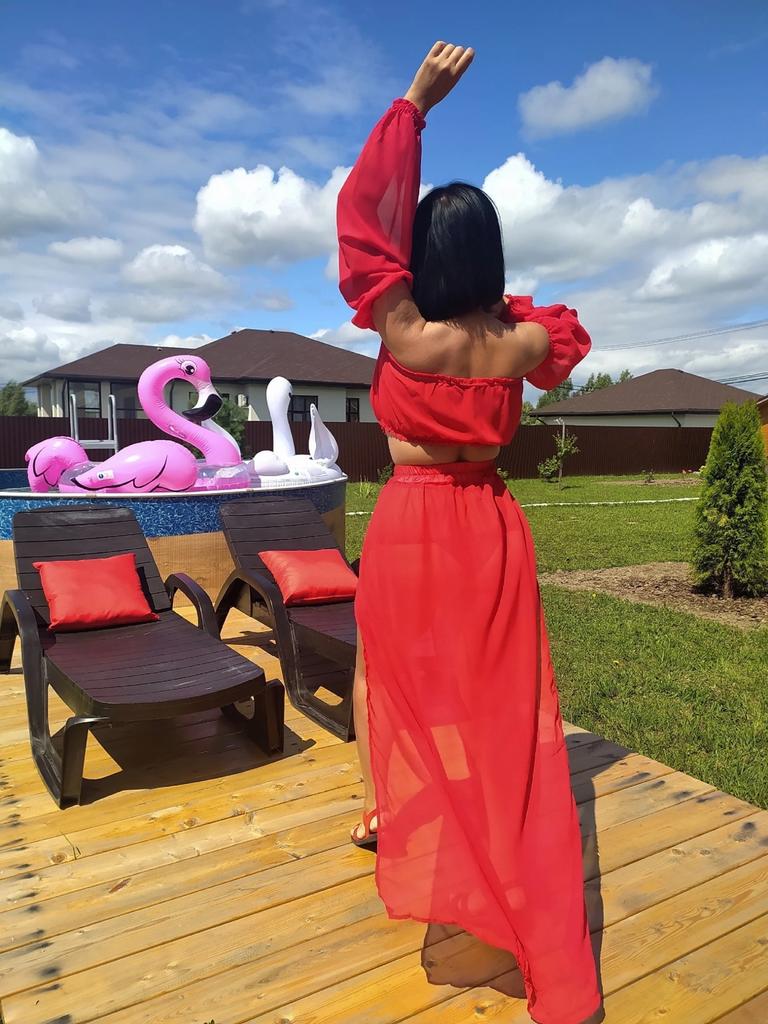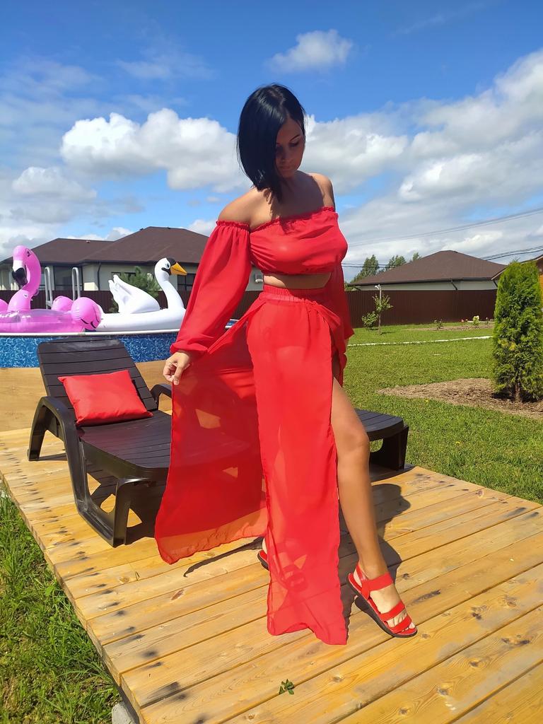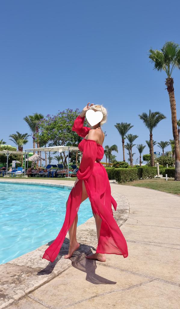 Jolie robe de plage ou d'été composée de 2 parties, un haut et une jupe fendus à droite et à gauche. Le tissu est très aéré et transparent donc bon pour la plage, le lac ou une fête sur la plage 🎊 La robe s'adapte bien et est confortable le grand correspond également à la taille normale. Je l'ai acheté en rouge mais il y a d'autres couleurs disponibles. Je pense que c'est vraiment sympa et je ne peux que le recommander, donc 5 étoiles sur 5. 🤩