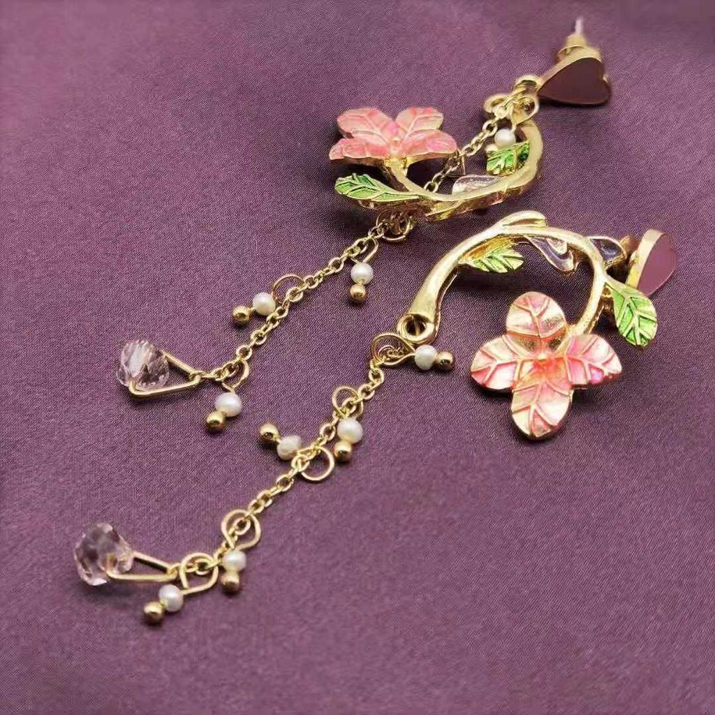 Salut les amis 🌹 Une belle boucles d'oreilles avec de longues chaînes et des fleurs de cerisier. Boucles d'oreilles mignonnes avec des fleurs de couleur rose délicate. Les boucles d'oreilles sont ornées de petits coeurs de couleur rose. Les boucles d'oreilles sont longues mais très légères. Longueur env. 7cm. Clous de girofle. Bouchons métal. Matériau alliage de cuivre avec émail. La décoration ne peut pas être imbibée d'eau, de parfums et d'autres produits cosmétiques. Ils ont l'air intéressant et doux. Ils sont venus dans un emballage zippé, sans substrat en carton. Reçu en un mois.