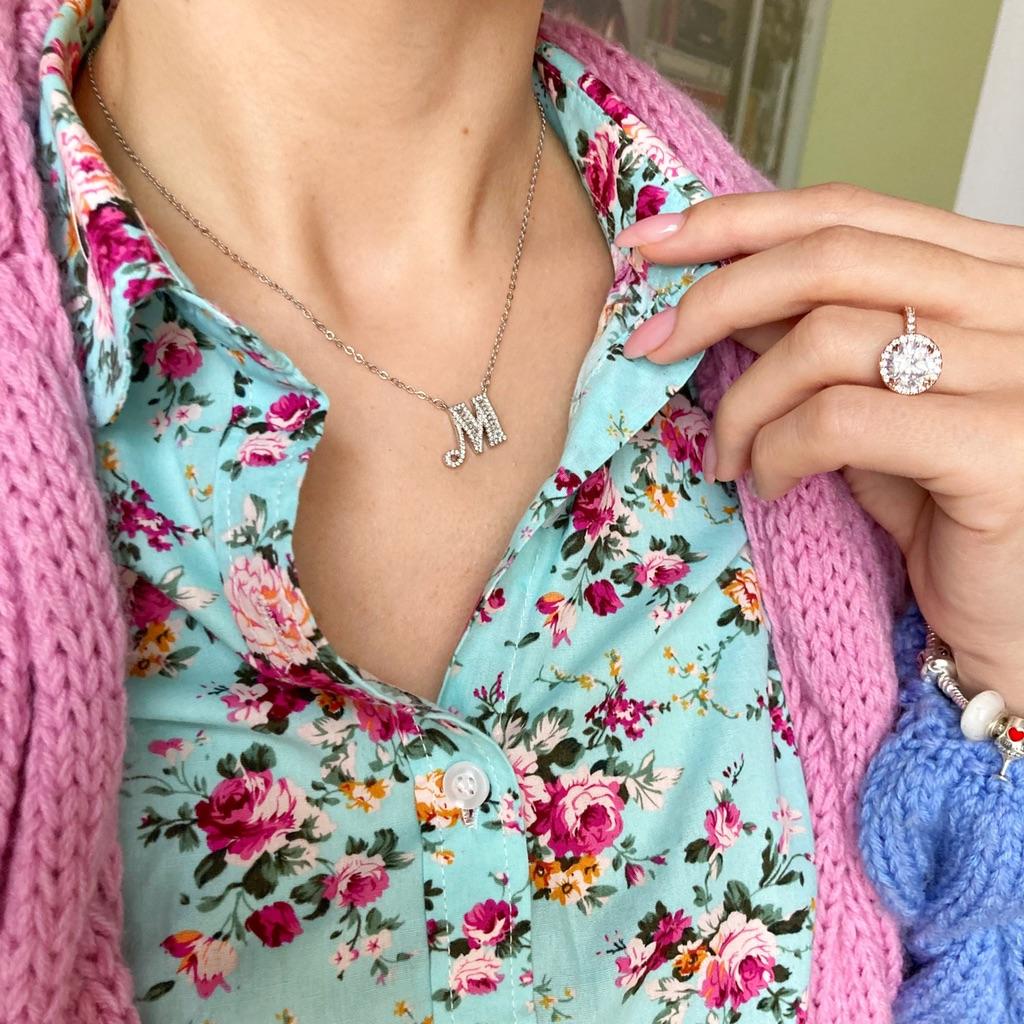 WWJ Collier élégant avec pendentif en zircone cubique brillant avec 26 lettres initiales
