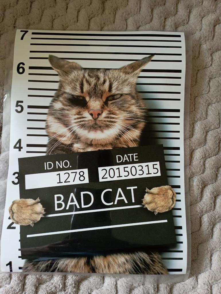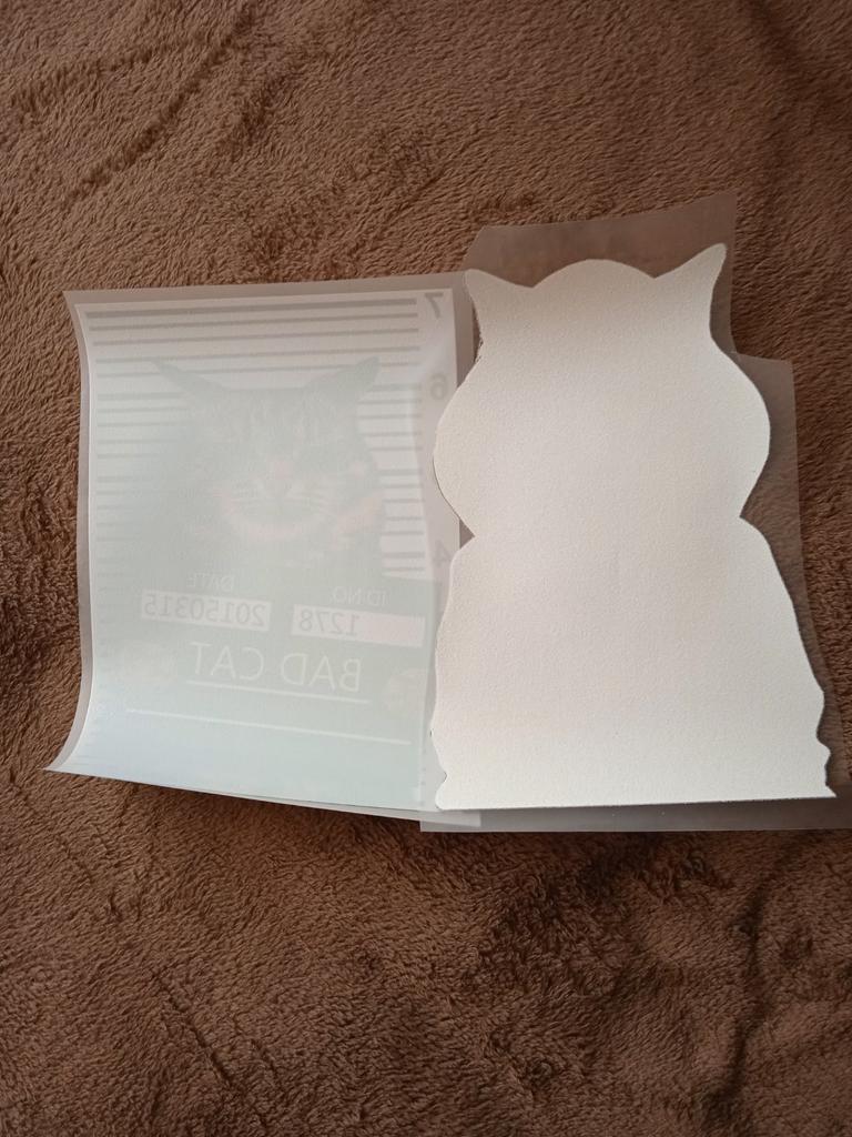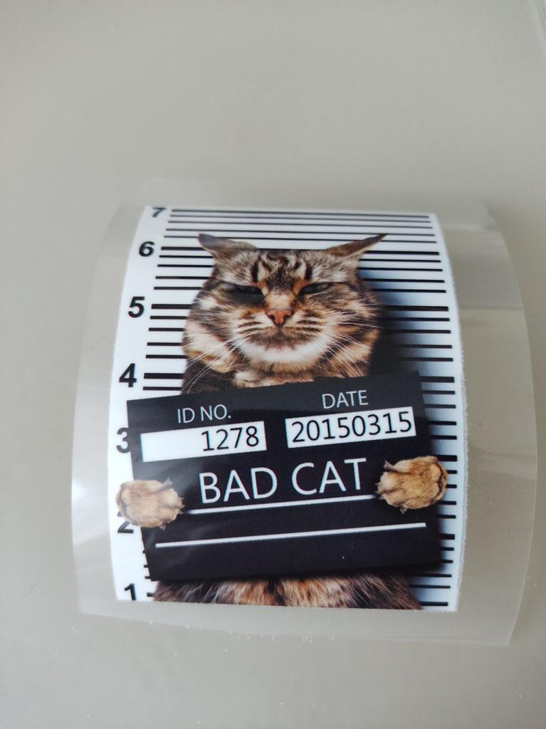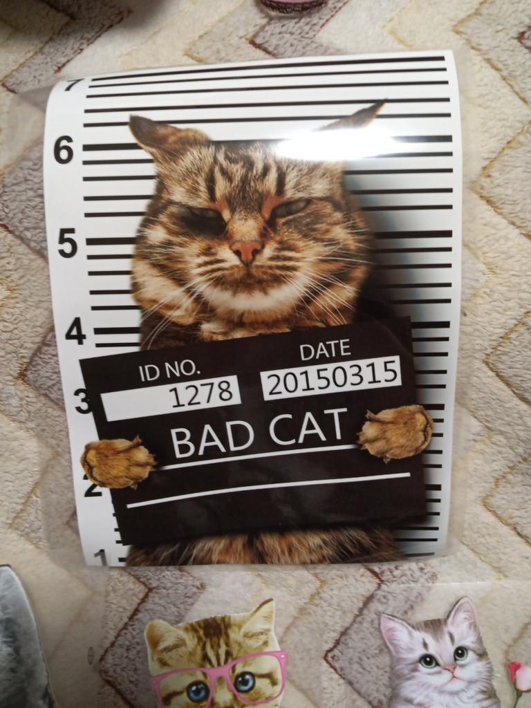 Beau chat, points de colle au dos. Je ne l'ai pas encore collé. Le cadeau n'a pas été placé ((je recommande le vendeur et le produit