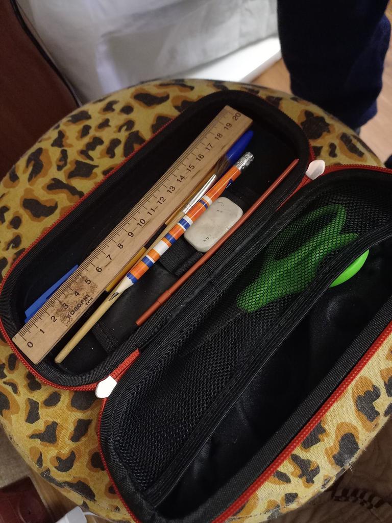 La trousse est très cool. Cousu de qualité, garde sa forme. Mieux que ce à quoi je m'attendais. La taille une fois pliée est de 22*10*4,5 cm. Ma fille est très satisfaite. je recommande Je suis arrivé dans trois semaines.