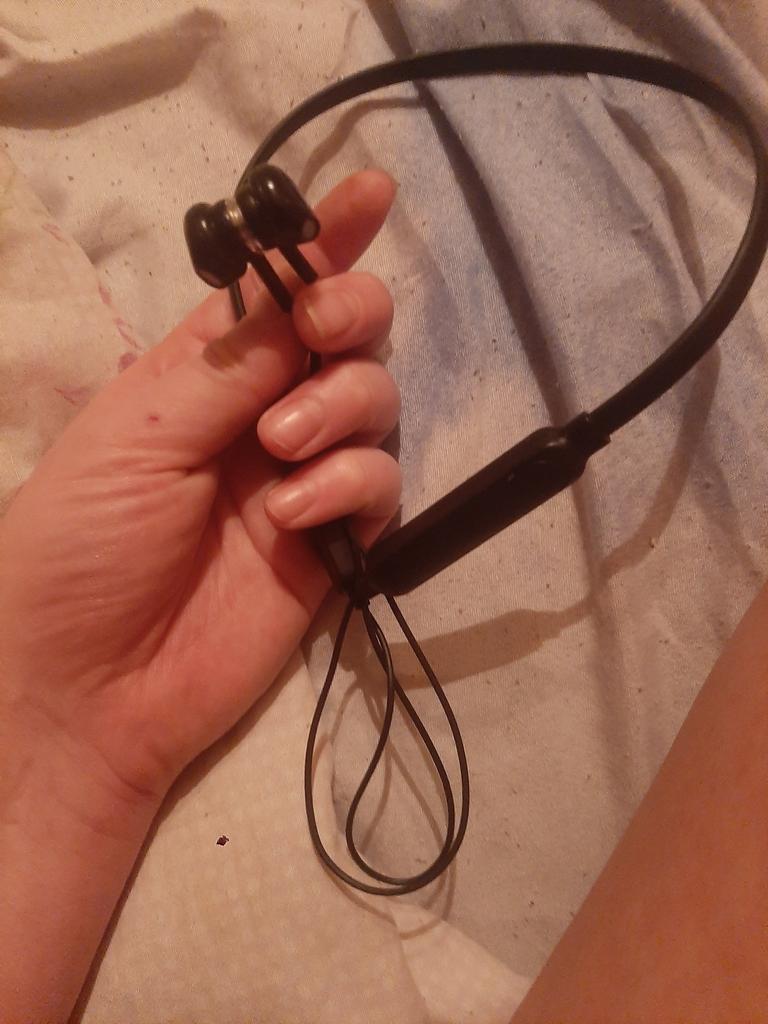 Le son est bon. Ils sont arrivés avec une demi-charge. Ils sont trop tordus, alors je les ai accrochés à un jouet, ils risquent de s'effilocher, car il y a quelques chaussons autour du cou. Les boutons fonctionnent, commutent, arrêtent, règlent le son. Il y a des aimants qui maintiennent les oreilles. Il a été connecté au téléphone sans aucun problème Je complète. La connexion avec différents téléphones est bonne. Après avoir tordu, il s'est un peu redressé, mais ensuite il se tord à nouveau. Une demi-charge suffisait pour environ une heure. Lorsque la charge est tombée à 20%, ils ont commencé à émettre un signal, je n'aimais pas ça, car ce n'était pas un signal unique, mais répété, ce qui gêne l'écoute. Vous pouvez écouter d'autres écouteurs à 20% pendant un certain temps, mais c'est un inconvénient évident pour moi. Chargé rapidement. Pendant la charge, il s'allume en rouge et en bleu chargé. Je n'ai pas encore essayé une charge complète, combien de temps ça dure. Le cordon de chargement est petit, seulement 5 cm, mais le chargement à partir d'une vieille cellule convient, donc ce n'est pas un problème. Attrape à une distance d'environ 6-7 mètres