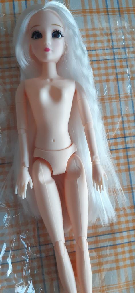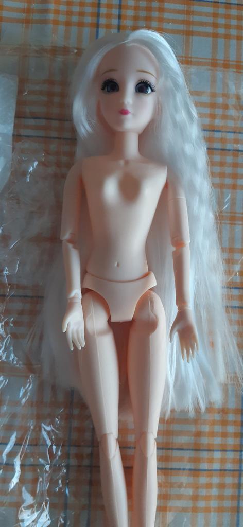 La poupée est super, je l'ai commandée deux fois, les jambes et les bras se plient, tout fonctionne, les cheveux sont beaux, longs et il n'y a pas de calvitie.