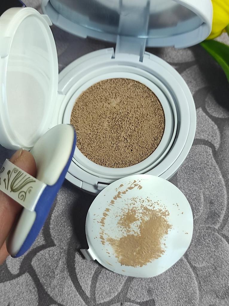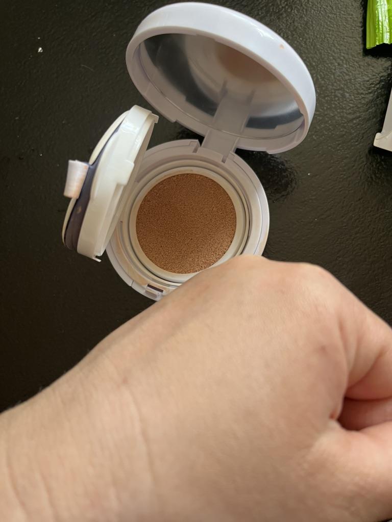 Cushion très cool à un prix très bas. Léger avec une couvrance assez bonne. Après l'application, il s'adapte à la couleur de la peau. La peau paraît saine sans brillance grasse. Je recommande !