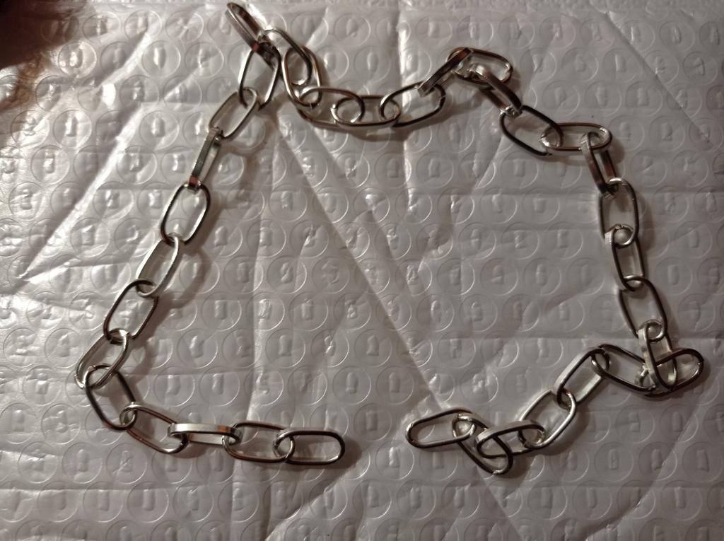 La chaine est comme sur la photo. Très léger. Il ne fait pas encore noir. Je suis satisfait de l'achat