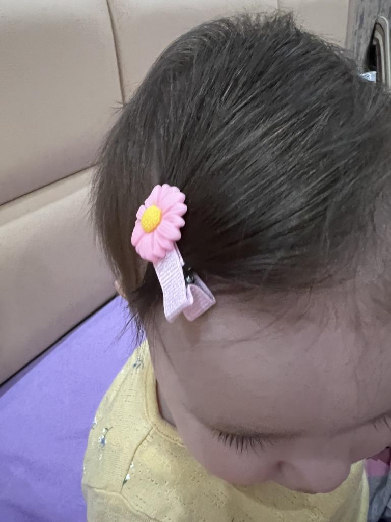 Pinces à cheveux mignonnes, les cheveux ne tirent pas, assez serrés. Les fleurs sont en plastique.