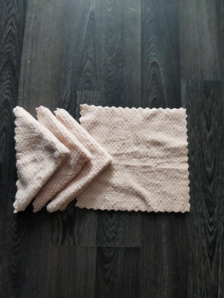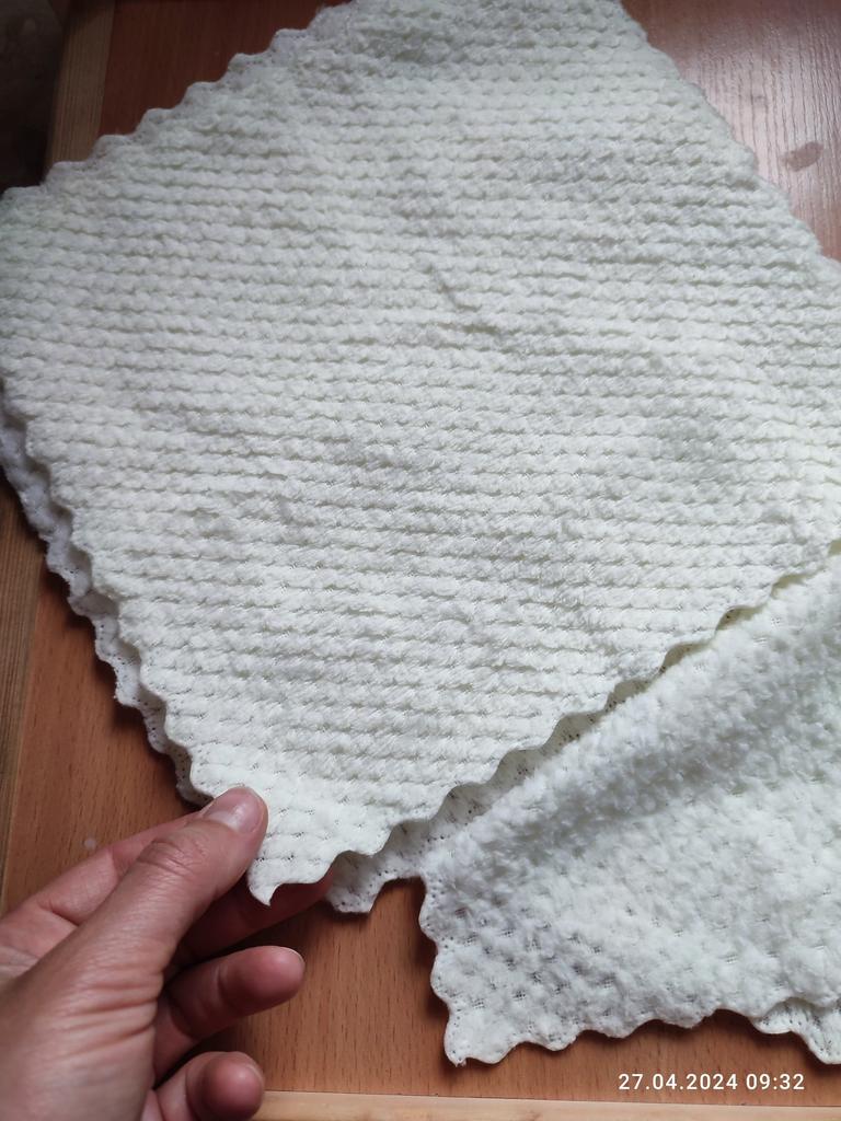 Bonjour à tous.👋 Torchons de cuisine en microfibre. Très doux, absorbe bien l'eau. L'ensemble comprend 4 pièces, pas grandes. Je recommande le produit.
