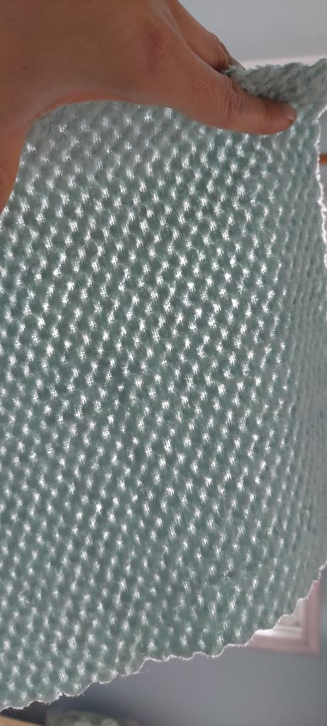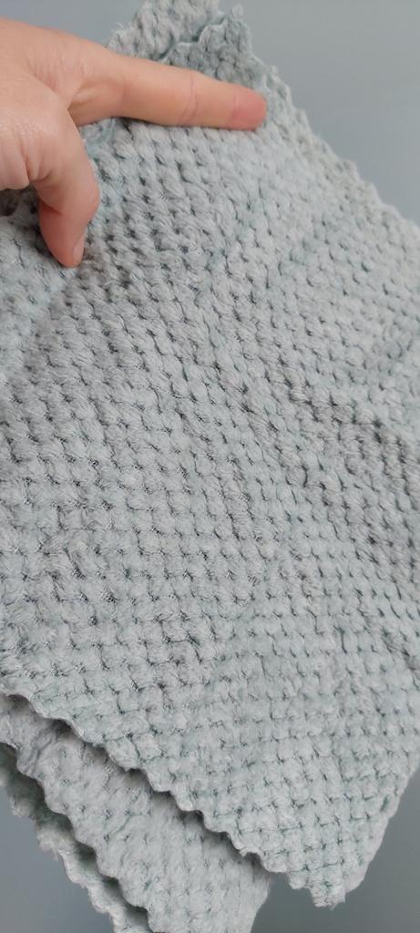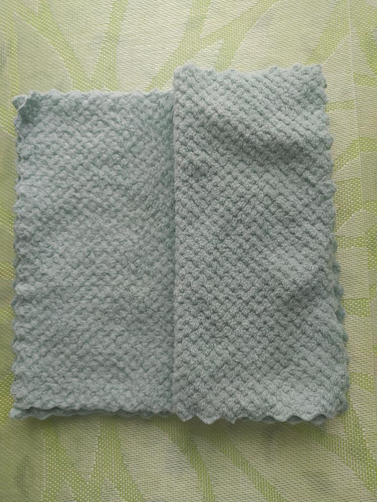 J'ai acheté 4 chiffons pour 24 MDL, la couleur est un turquoise pastel exactement comme dans la description du vendeur. ● ils sont doux au toucher ● ils absorbent l'eau mais laissent des rainures humides sur un verre ou une surface brillante ● texture assez épaisse et dense ● Les bords ne sont pas ourlés, mais la façon dont ils sont coupés ne leur permettra pas de s'effondrer