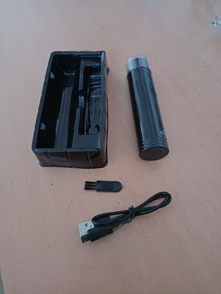 Chargeur professionnel compact parfait, faible bruit, beau design.Peut être utilisé pour les poils du visage ou du corps.Pas besoin de piles car il se recharge avec le câble USB fourni avec le kit.Il est livré avec une mini brosse de nettoyage et des instructions également.La livraison a pris 3 semaines .Bon shopping!