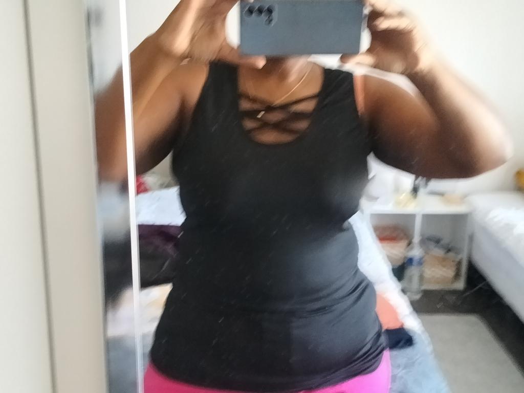Le décolleté est moins profond qu'il n'y paraît sur la photo. J'aime le tissu. Il est bien élastiqué. Lait blanc.