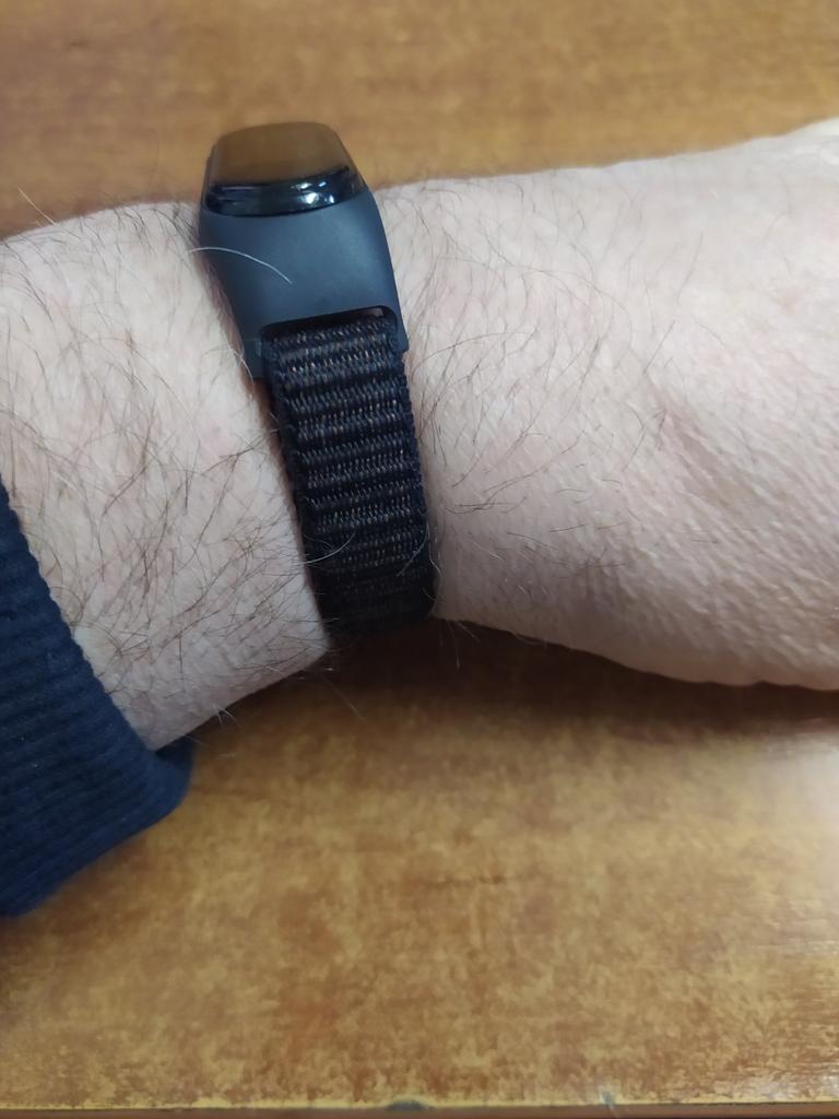 Il a fallu un certain effort pour s'adapter au tracker. S'adapte parfaitement à la main. Le velcro se fixe parfaitement