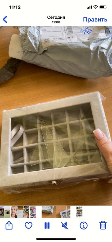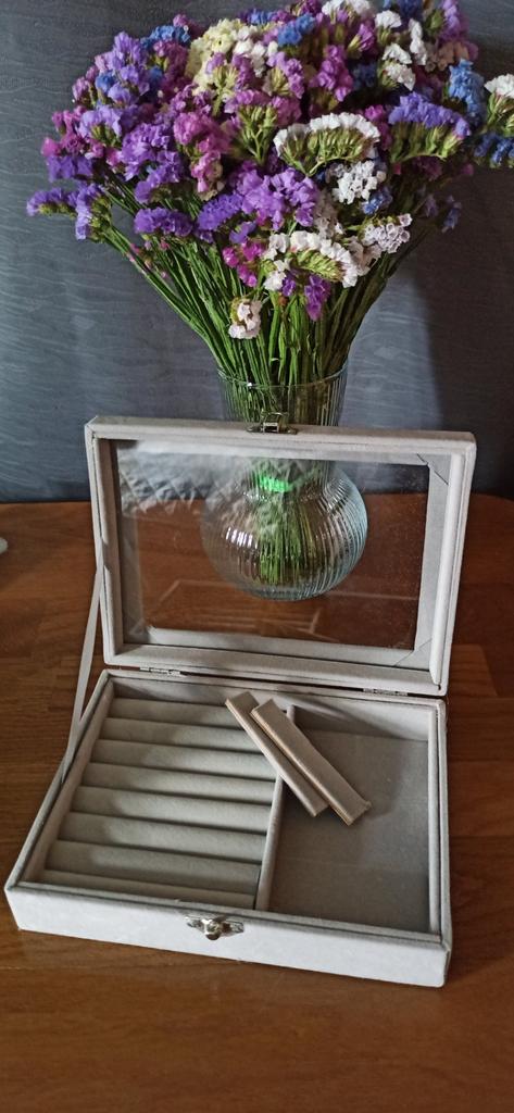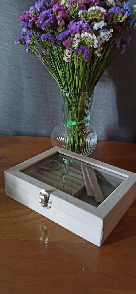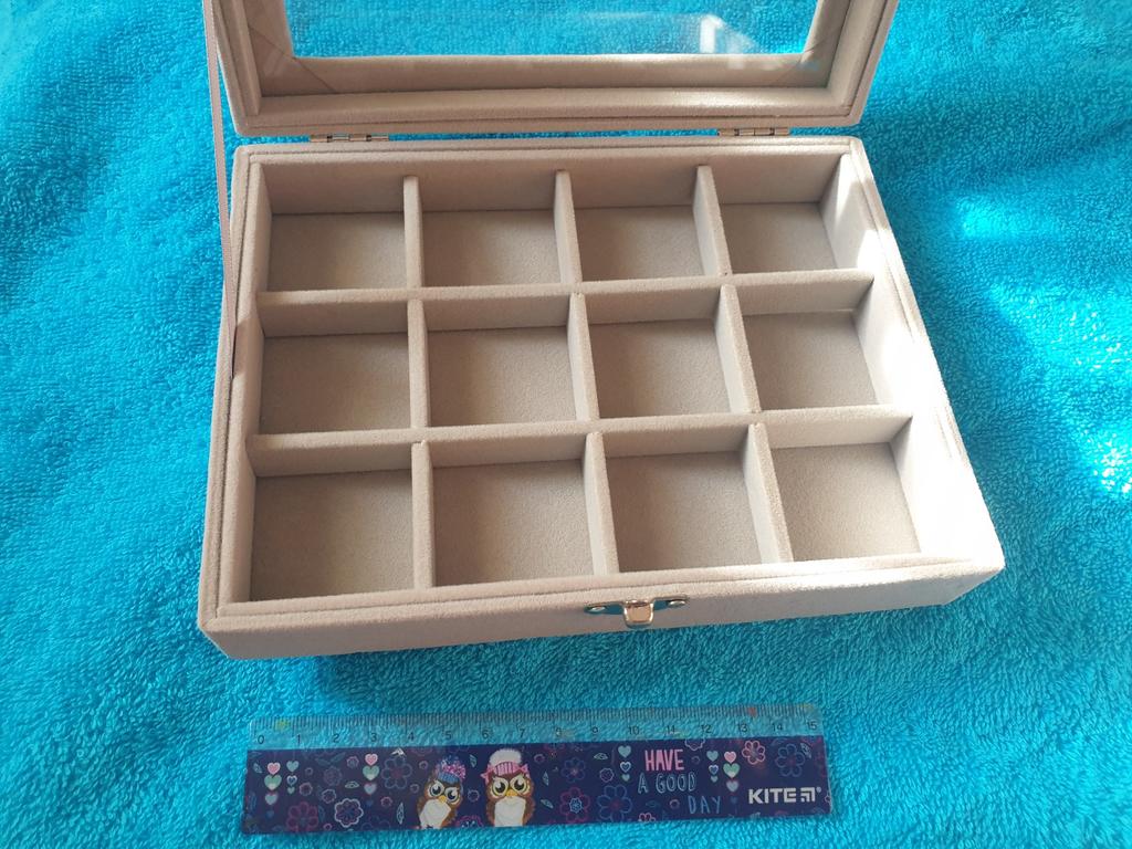 Boîte-boîte sans odeur. Agréable au toucher. Aucun défaut visible. 15 cm sur 20 cm. Compartiments intérieurs de 4 cm sur 4 cm.