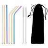 Ensemble de pailles réutilisables en acier inoxydable, couleur arc-en-ciel, pour thé aux perles, jus, avec brosse de nettoyage