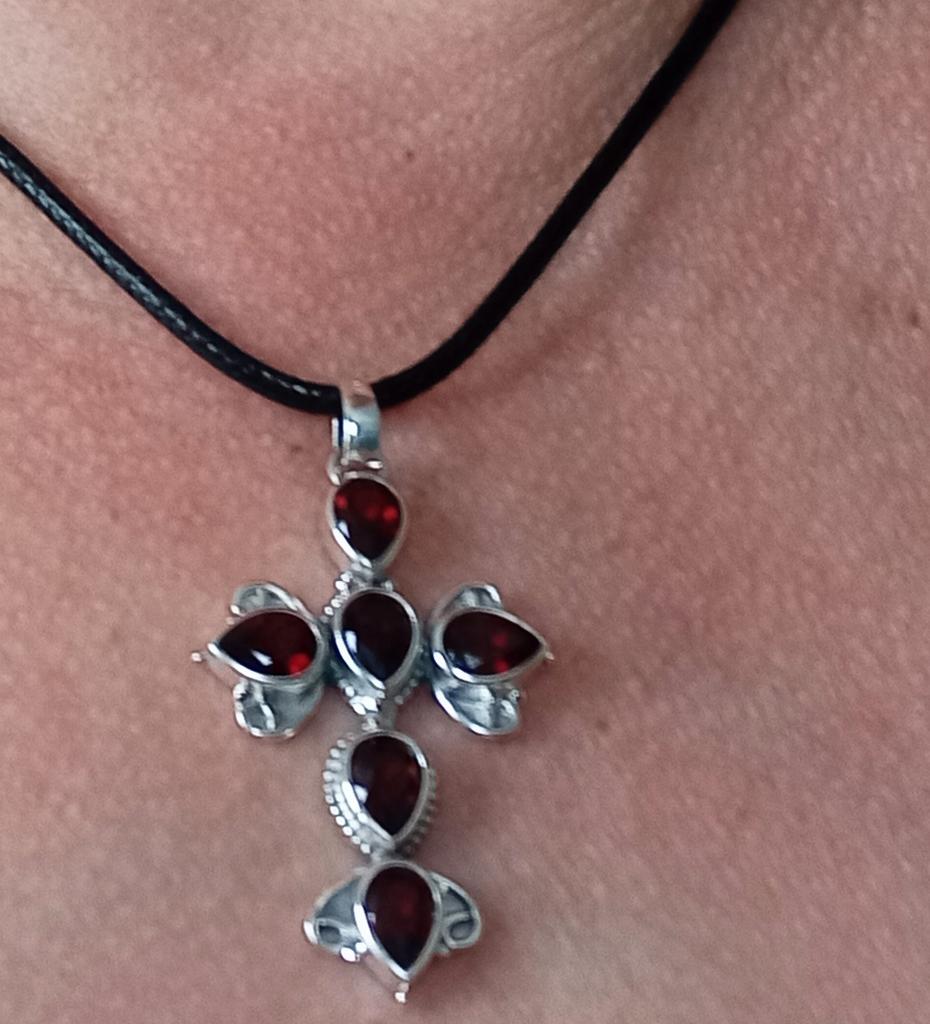 Pendentif Reiki, Pendentif Croix Pierre Précieuse Grenat Rouge Ap6147