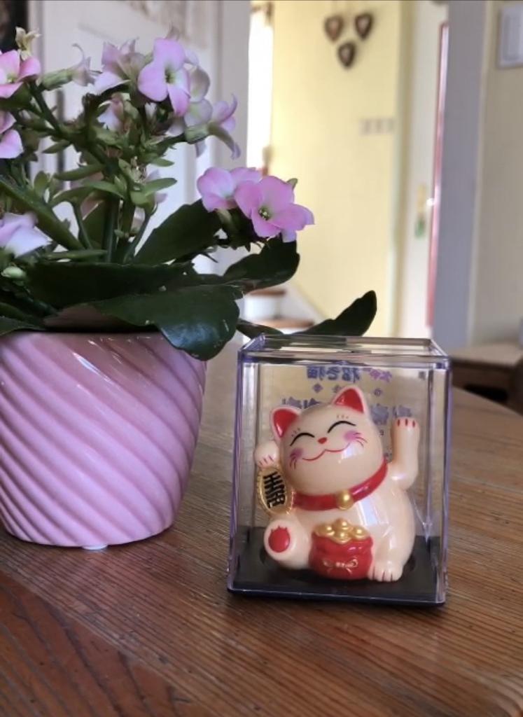 Chat cool, agitant sa patte. Lorsque vous recevez le colis, posez-le sur le rebord de la fenêtre pour le charger, il sera alors préférable d'agiter votre patte