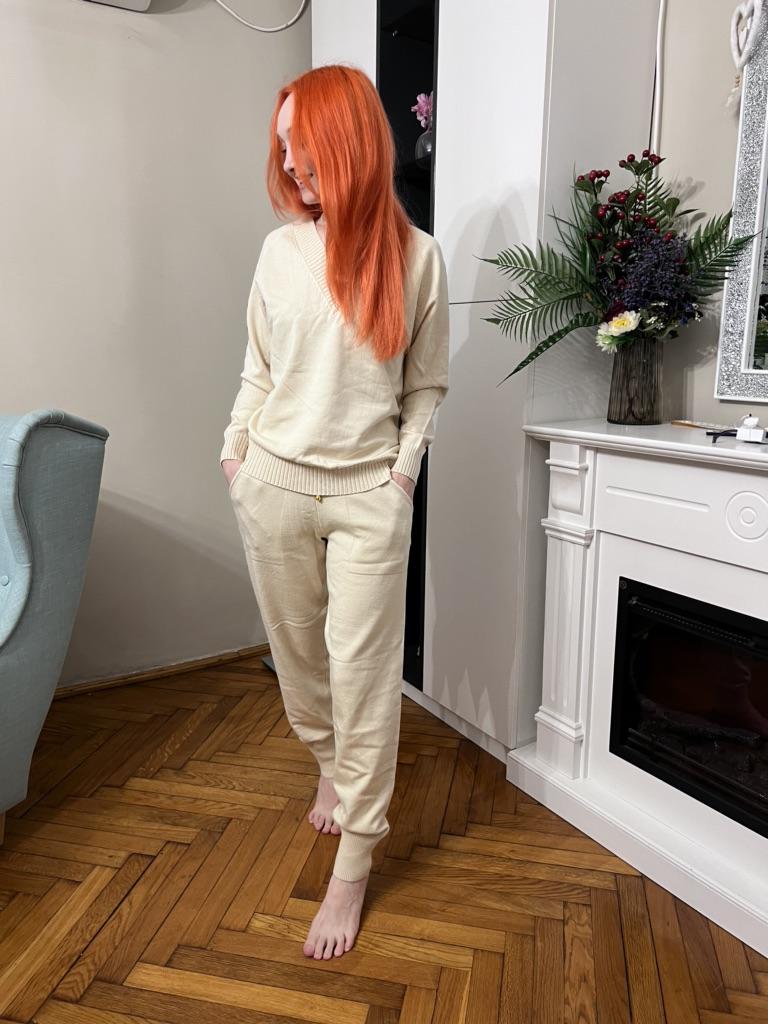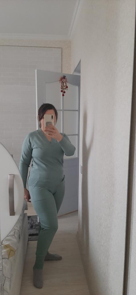 Costume tricoté 💛 • Qualité 10/10 • la commande est arrivée en 4 semaines • doux et agréable au toucher • la taille correspond au tableau • la couleur coïncide avec celle des images du vendeur • adapté à la saison froide Je recommande! ⁇
