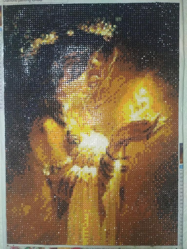 J'adore les peintures au diamant, elles sont super originales, même une fois terminées, elles ont un éclat spectaculaire et elles ont l'air super luxueuses, elles ont fière allure En plus de l'aspect décoratif et esthétique, c'est comme une thérapie pour se détendre et se divertir, c'est comme un puzzle mais en mille fois mieux. Détendez-vous, divertissez-vous et séjournez dans le luxe Grande variété de modèles différents à choisir. Aussi une taille assez grande, j'adore Et aussi avec un kit de travail inclus, c'est pour recevoir et commencer. Le plastique qui recouvre le tableau s'enlève partiellement et on colle pierre par pierre selon le nombre et la couleur et au fur et à mesure on va retirer le plastique, c'est comme un film protecteur car le tableau a de la colle, c'est du type autocollant donc les pierres sont collées Emballage 📦 correct Expédié ✈️ à temps 100% recommandable