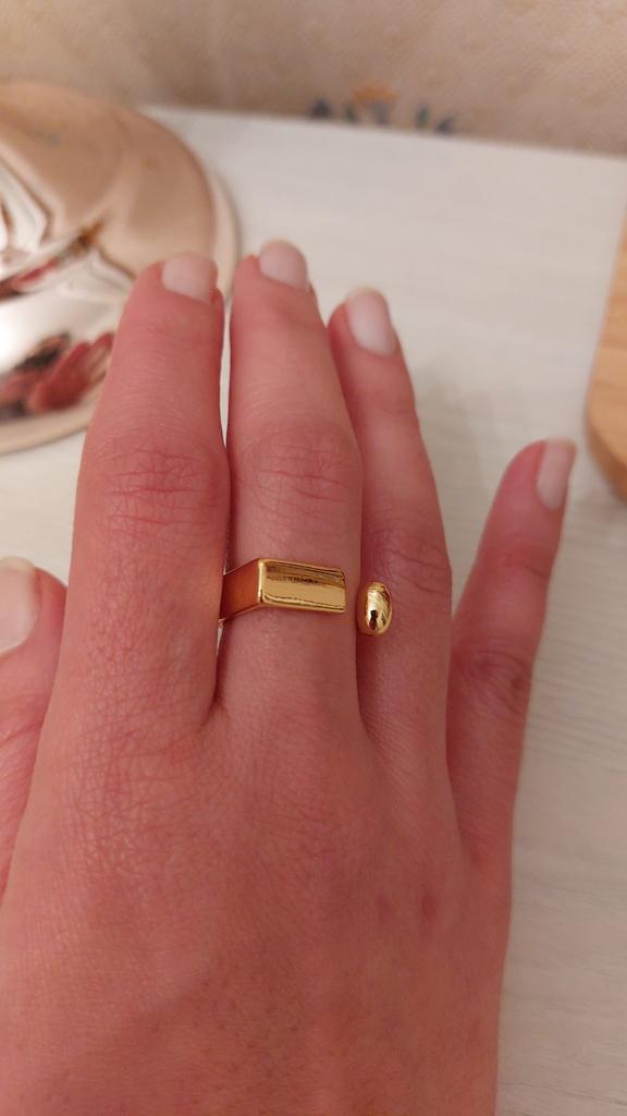 Tout d'abord, la taille : avec des doigts moyens, il convient à mon petit doigt, c'est-à-dire petit. Théoriquement, il est possible d'accélérer, mais alors la forme est perdue. Deuxièmement, la couleur : toujours jaune, différente de l'or. Je n'ai pas aimé.