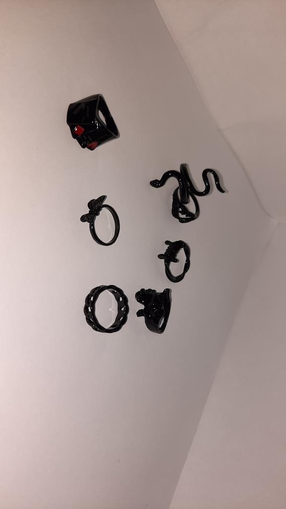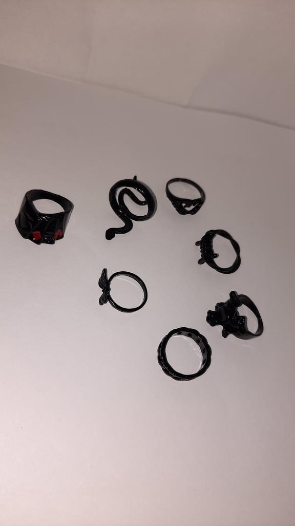 Punk noir couleur serpent coeur chaîne anneaux pour femmes hommes géométrique noir Poker grenouille papillon bagues ensemble bijoux cadeau