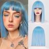 MISS WIG Perruques synthétiques Bob courtes avec frange pour femmes, perruques naturelles en Fiber Blonde noire bleue pour fête Cosplay Lolita, usage quotidien