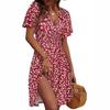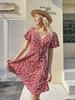 Robes d'été Sexy en mousseline de soie, col en V, imprimé bohème, manches courtes, lacets, taille haute, S-XXL