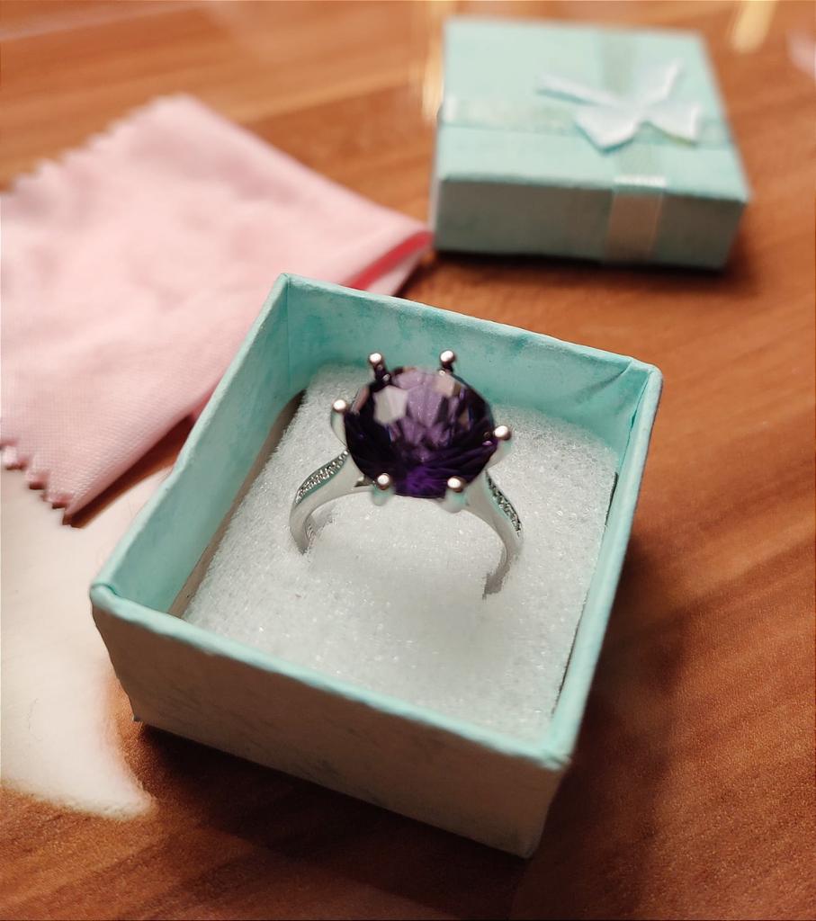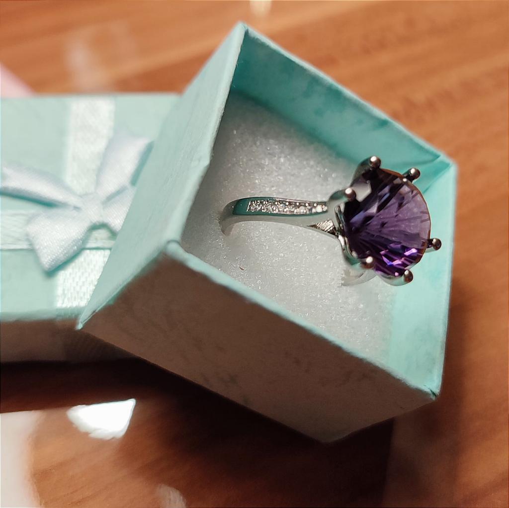 BELLA BOX Bague en améthyste à Six broches, pierre violette, couleur or Rose, pour femmes, bagues de fiançailles et de mariage redimensionnables