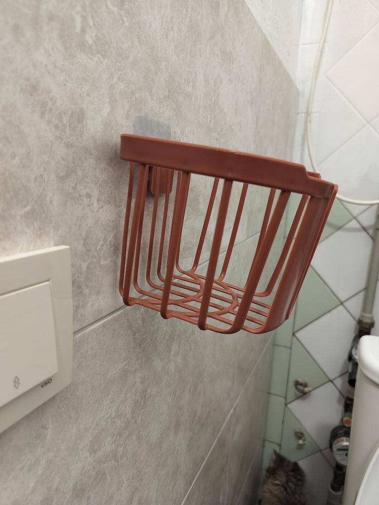 Appareil pratique pour le papier toilette. Le panier est livré avec un support adhésif. Pratique et pratique. Merci au fabricant.