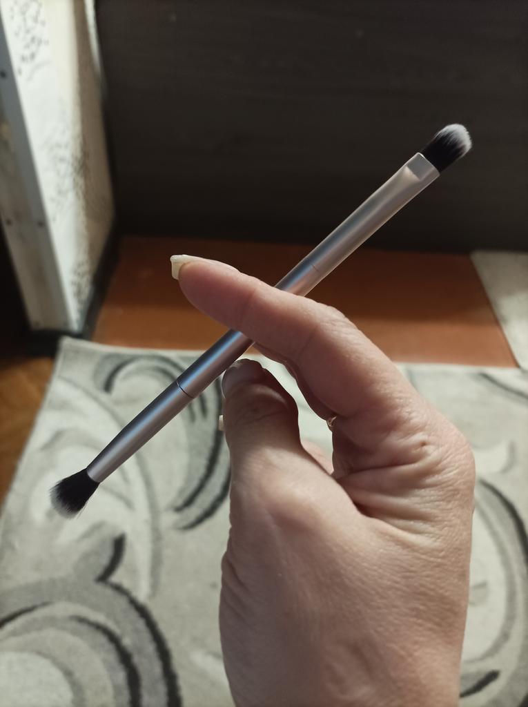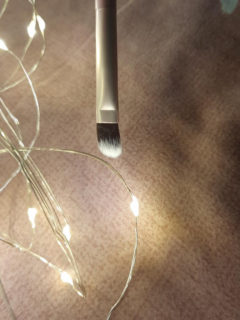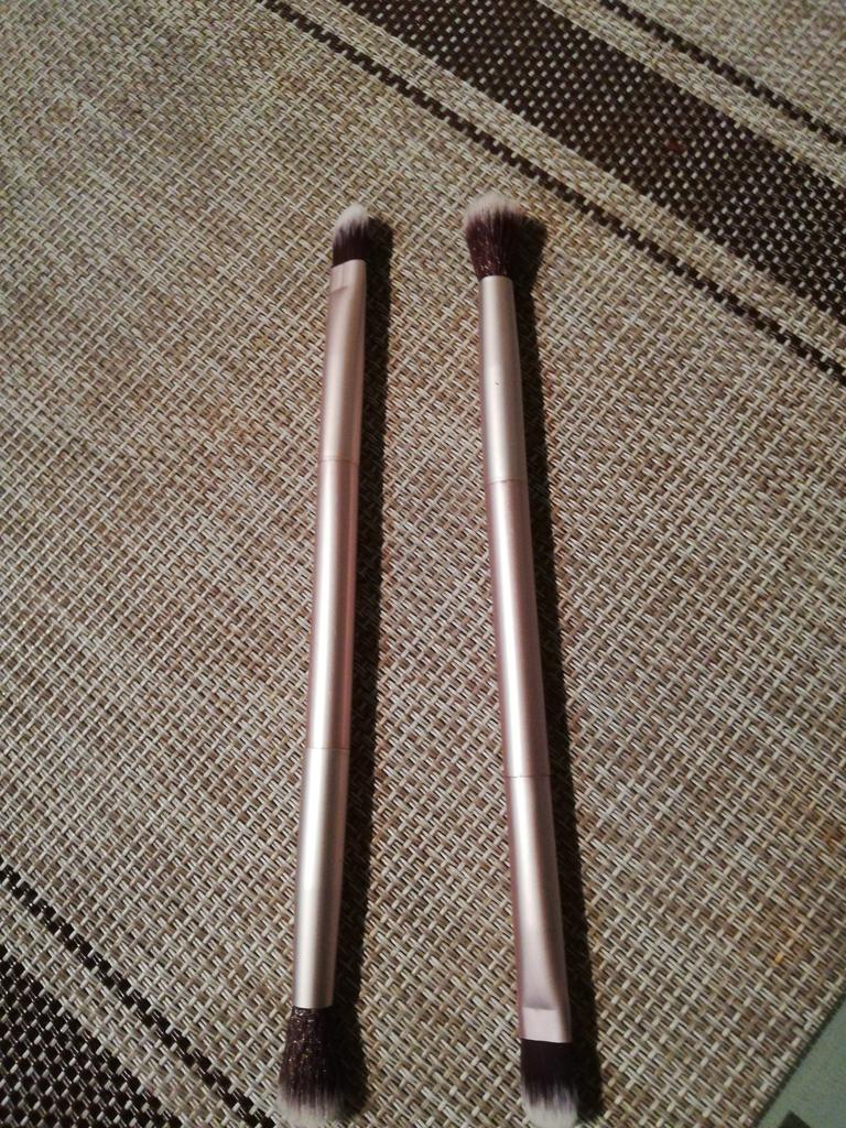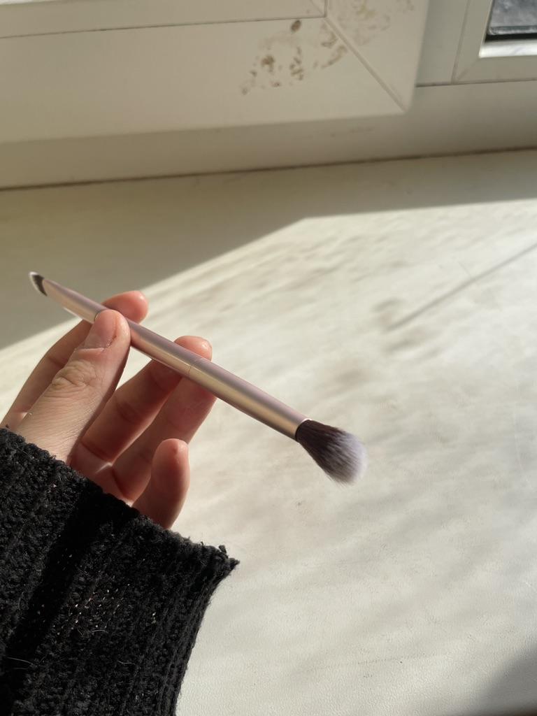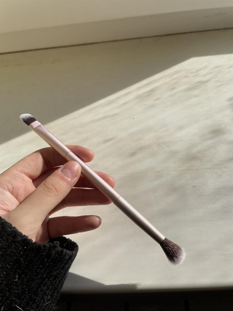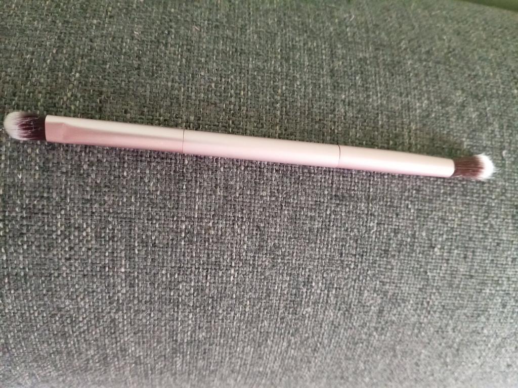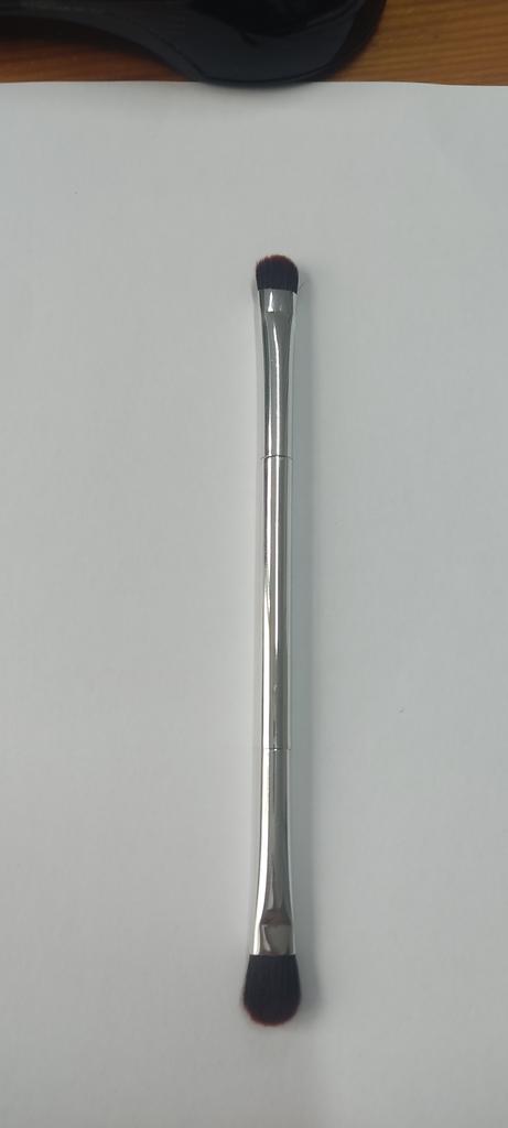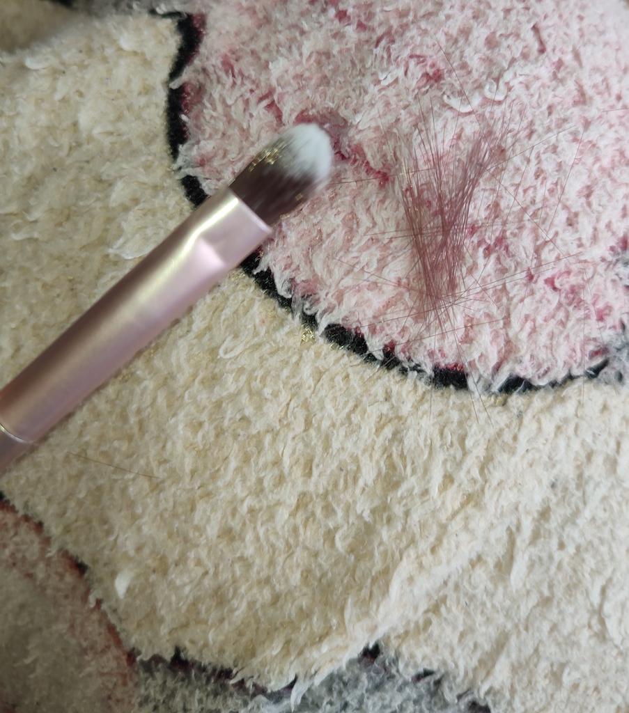 Le pinceau est synthétique, doux, agréable. Le tas ne dépasse pas et ne sort pas. Les ombres s'appliquent et se mélangent bien.