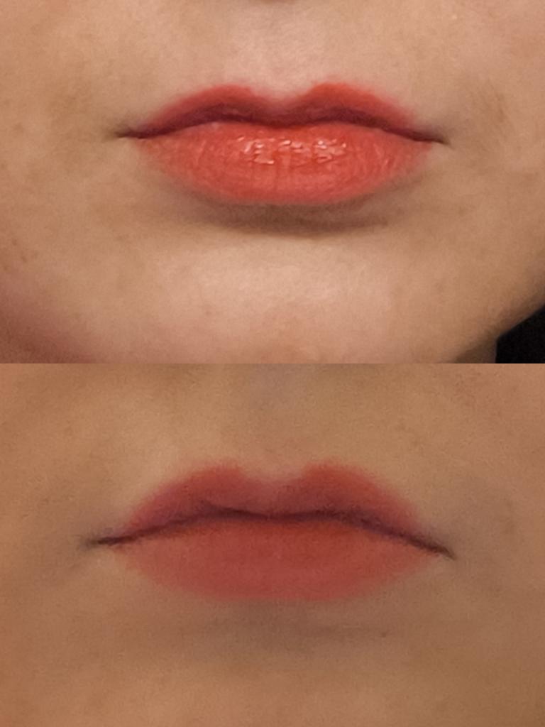 La teinte est vive et laisse rapidement la couleur, même si on en tient un peu sur les lèvres