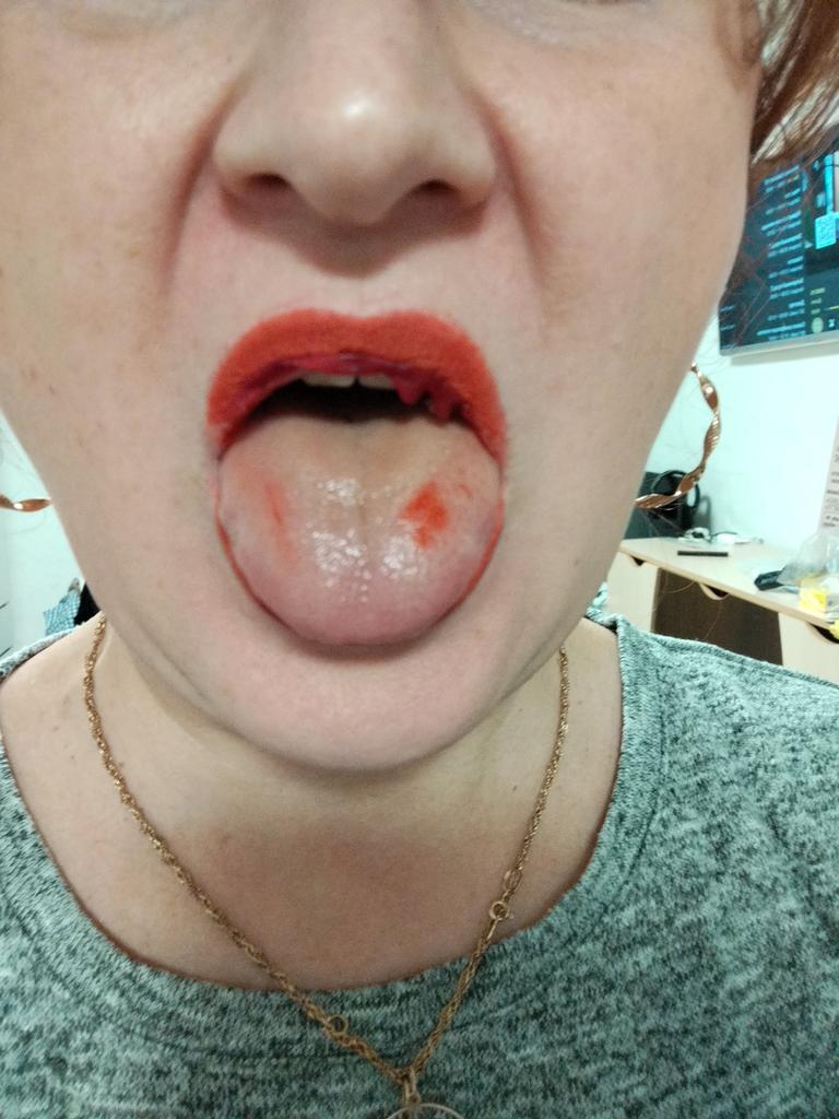 Travail. Et après m'être lavé les lèvres plusieurs fois, la teinte est restée, bien sûr pas si intensément, mais les lèvres sont quand même plus accentuées