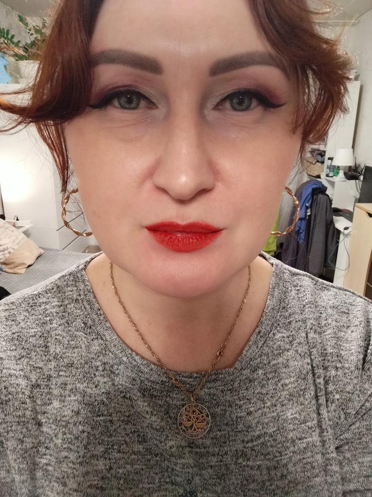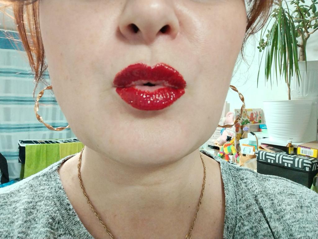 Rouge sexy. Tient parfaitement, l'applicateur est un peu inconfortable, il faut s'y habituer, très facile de se maquiller les dents. La couleur change selon l'éclairage. À la lumière du jour, il n'a pas l'air aussi saturé.
