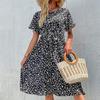 YYFS Robes décontractées à manches courtes et col rond pour femmes, mode été printemps imprimé Floral