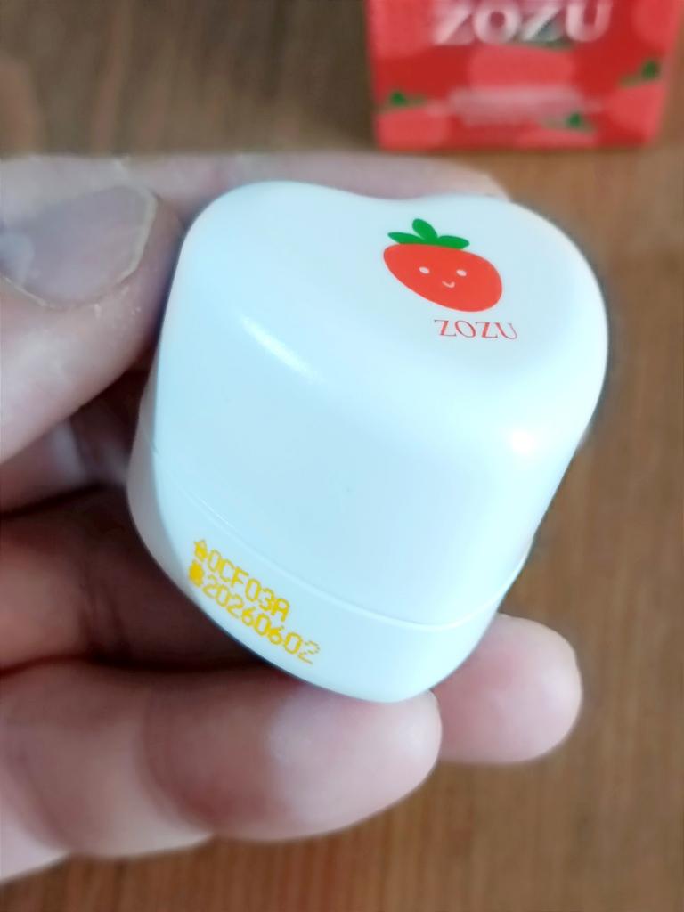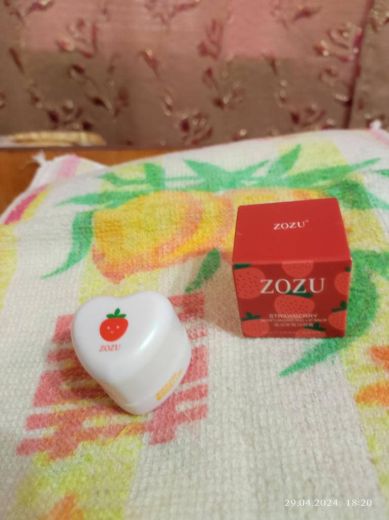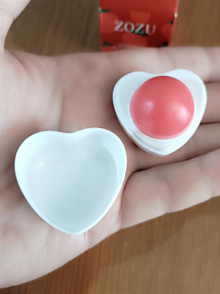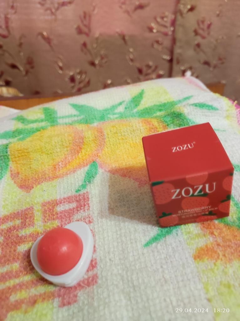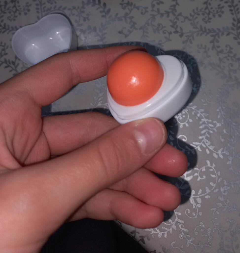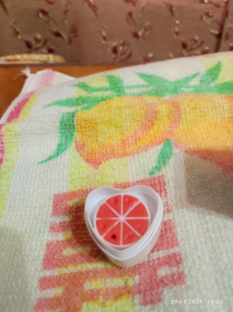 Merveilleux baume à lèvres fruité 💖 En effet, il hydrate, mais ne sépare pas🌟 Double packaging : baume principal en haut, fleur avec secteurs de paillettes rouges en bas. Je recommande d'acheter 💗 Merci Joom!