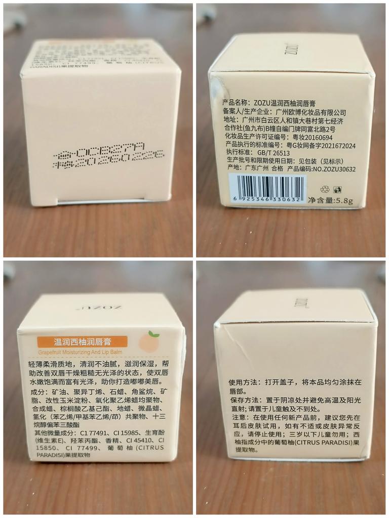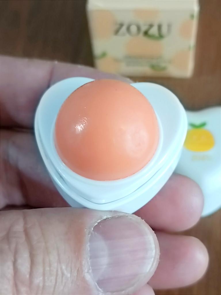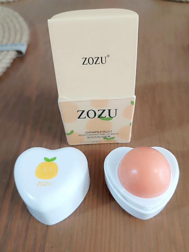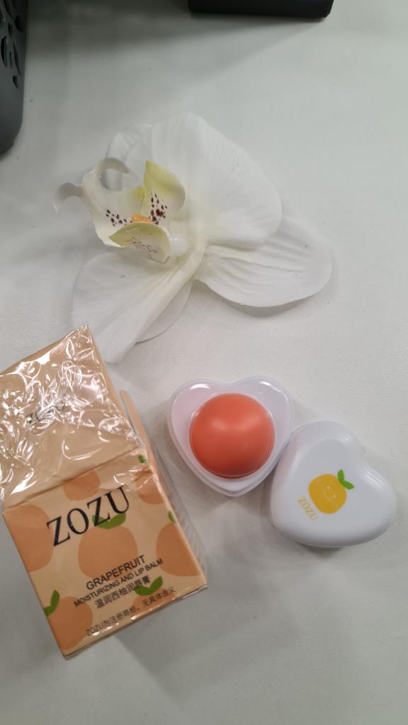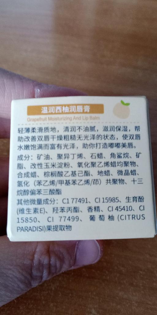 Baume-gloss à lèvres. Le packaging est mignon, mais je ne sens ni le goût ni l’arôme du pamplemousse.