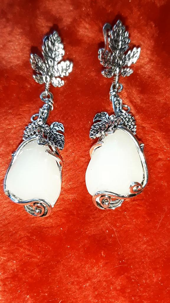 Boucles d'oreilles Vintage opale couleur argent feuille de raisin plante pierre de lune boucles d'oreilles pour femmes fiançailles anniversaire fête bijoux cadeau