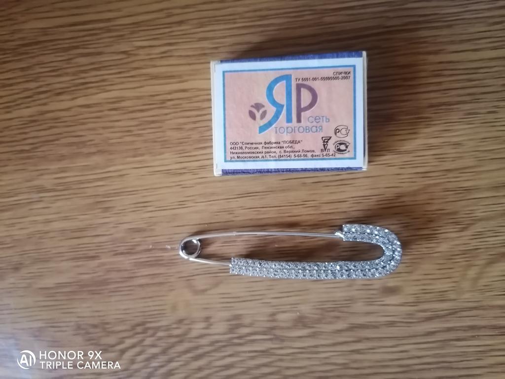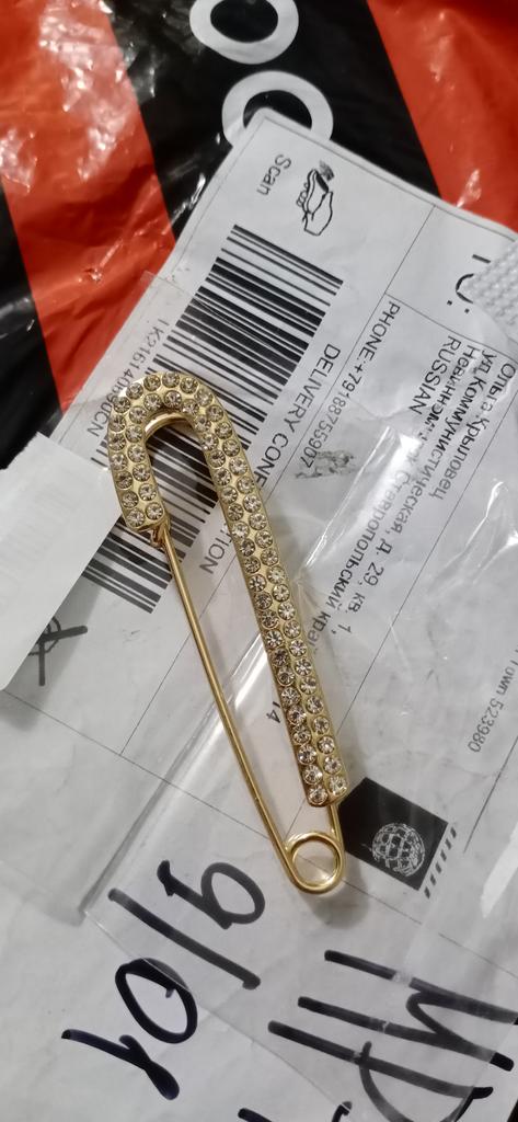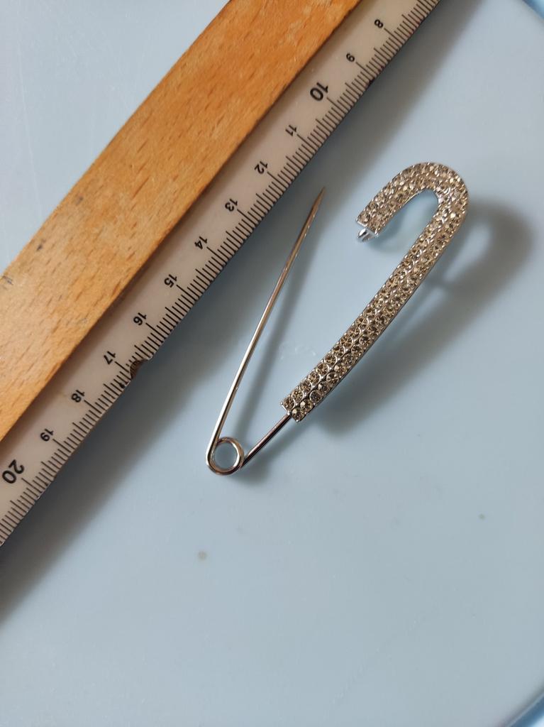 La qualité est mauvaise, la soudure s'est éloignée de la partie décorative, la taille, comme toujours, n'est pas indiquée, presque 8 cm. L'aiguille épaisse laisse des trous dans le tissu, en général, comme toujours, il n'y a pas de taille esthétique trahissant romantisme et subtilité, je ne suis pas content.