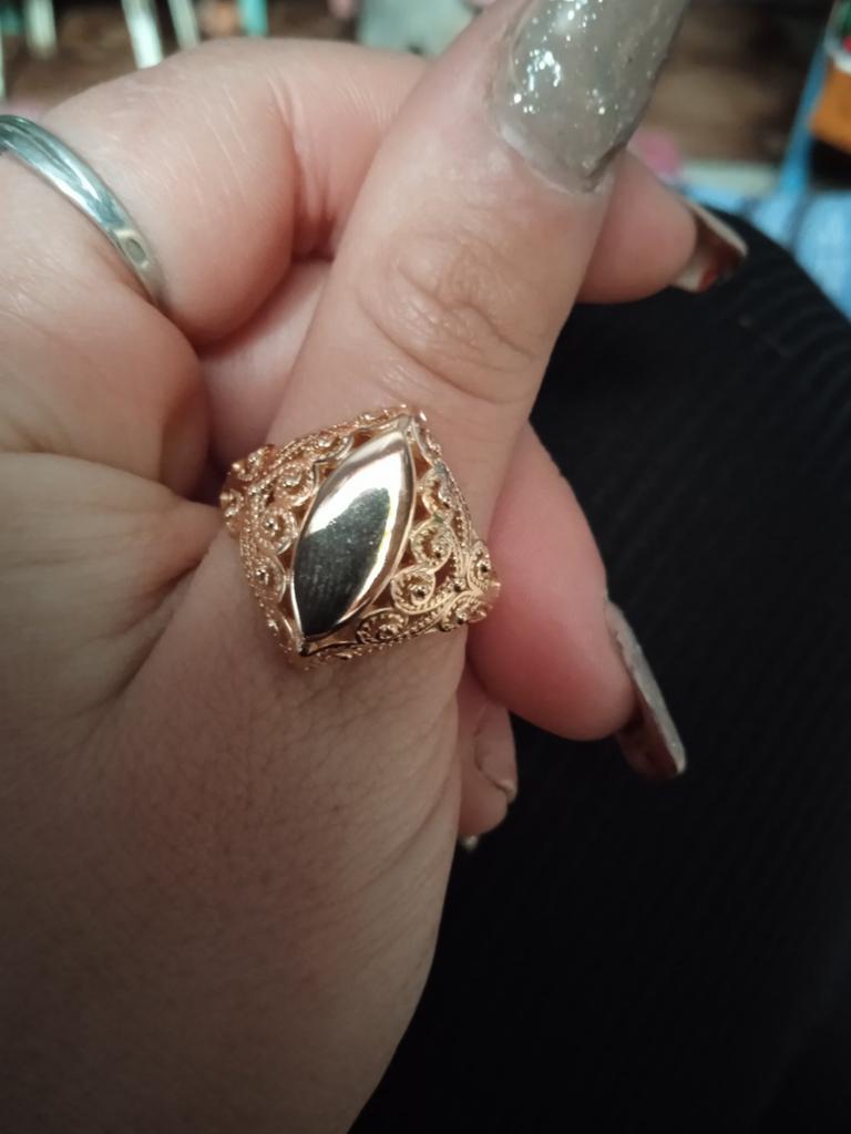 La bague est ravissante, soignée, aspect doré. Prenez-la, vous ne le regretterez pas.