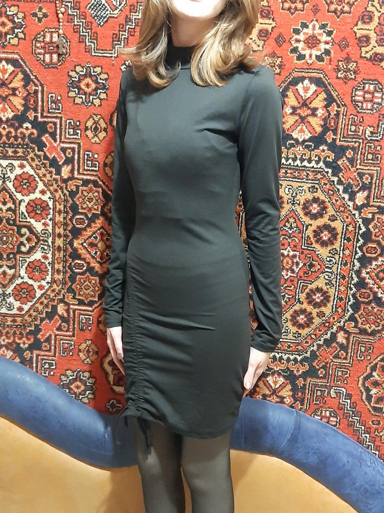 Je suis juste étonné. Il m'allait parfaitement, comme s'il était cousu sur moi. Vous n'avez pas du tout à vous soucier du tissu, il est très élastique et agréable au corps et ne s'effilochera certainement pas. Un bel ajout en bas, les lacets peuvent être ajustés pour accentuer la robe. Lorsqu'on ajuste les lacets, la robe se resserre un peu. Seuls les lacets sont un peu trop longs et je les ai un peu coupés. Donc merci au magasin, je suis satisfaite.