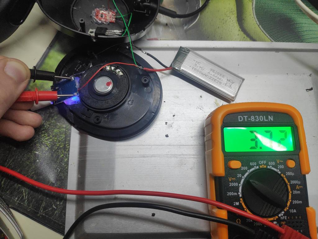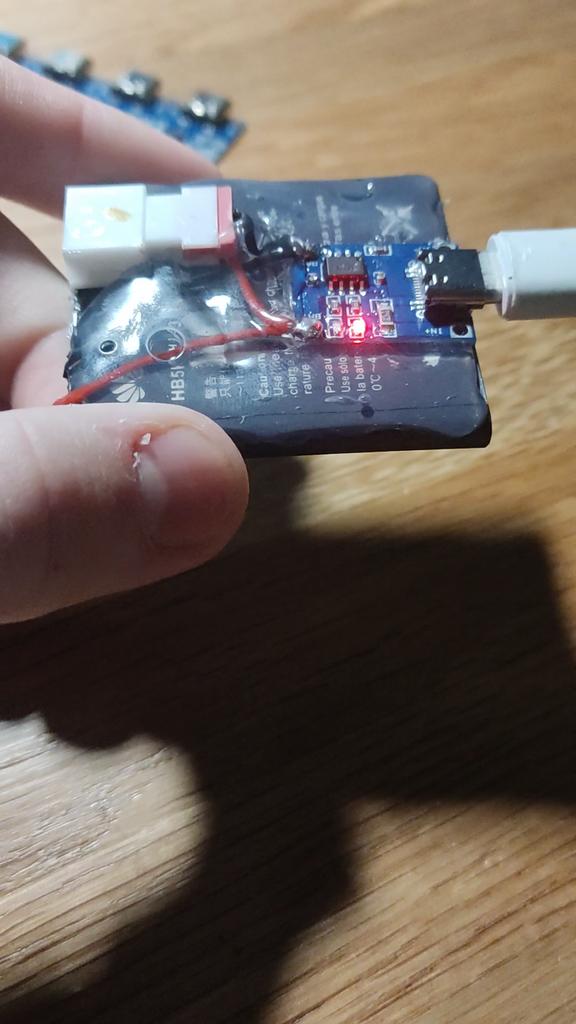 À courant maximal, il chauffe comme un bouilloire, ensuite pendant la charge, le courant a diminué et il est légèrement tiède. L'accumulateur de type 18650 s'est chargé.