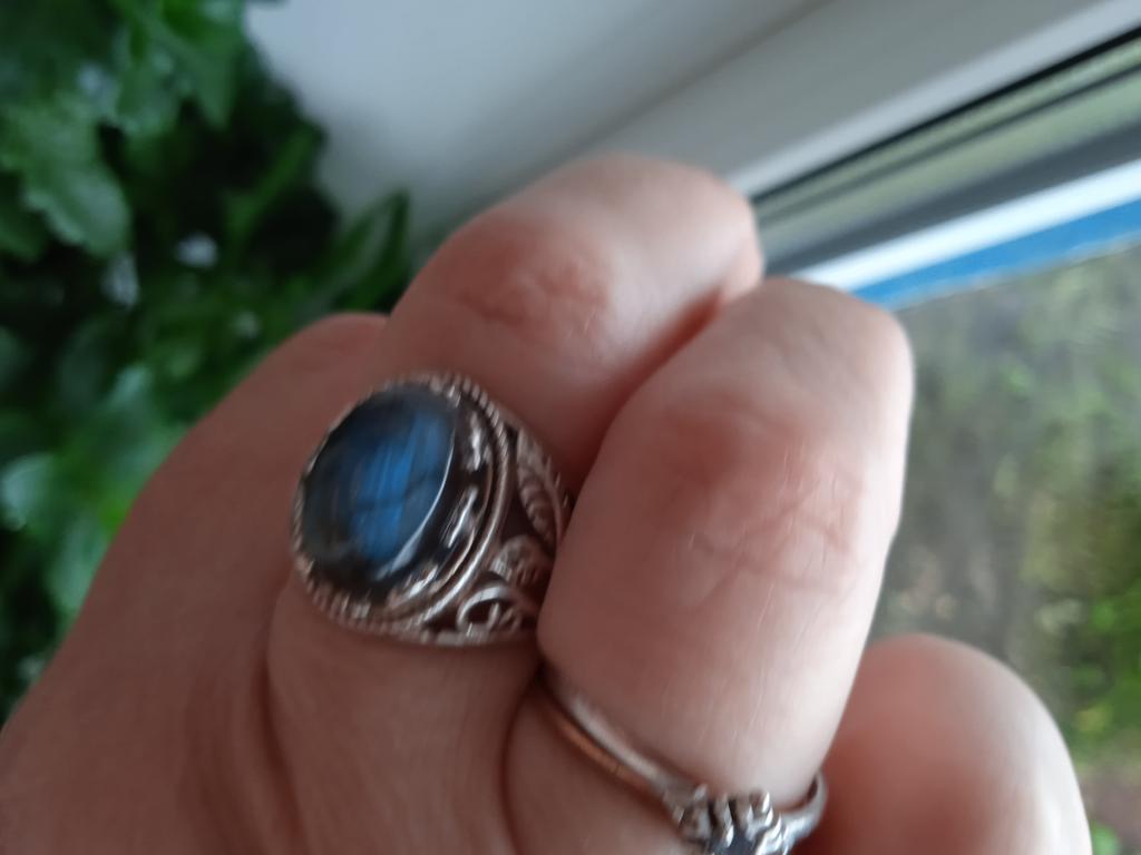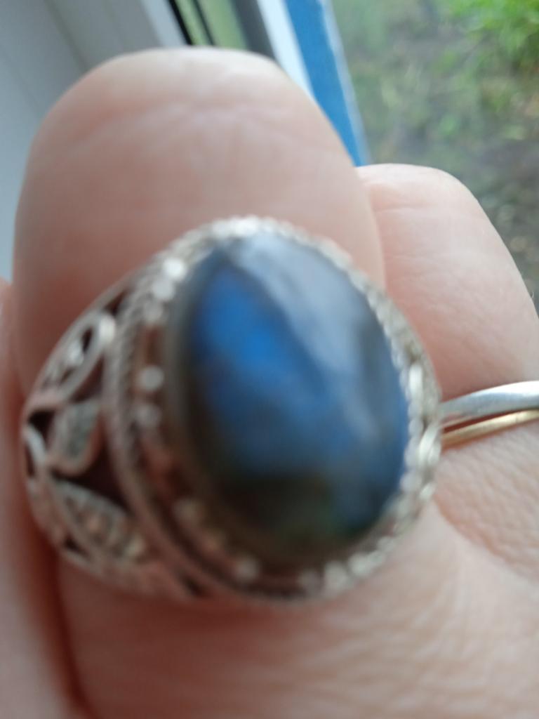 La bague a l'air très douce, le galet joue, magnifique. , j'ai vraiment envie de vous transmettre sur la photo le jeu de la couleur de la pierre, un seul mot, magnifique.