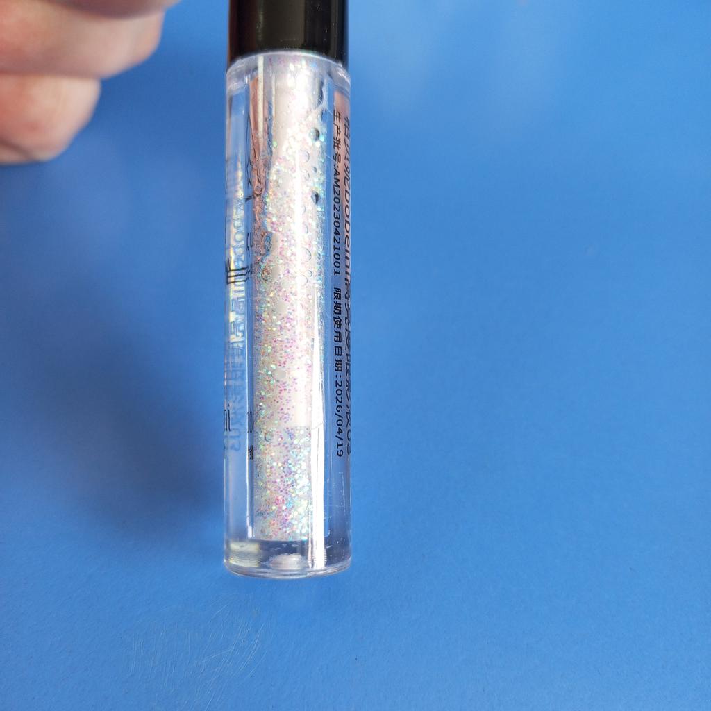 Super paillettes. Reste toute la nuit même si vous vous frottez accidentellement les yeux. Cependant, évitez de le placer près des rides des yeux, sinon les paillettes peuvent s'y glisser et les accentuer.